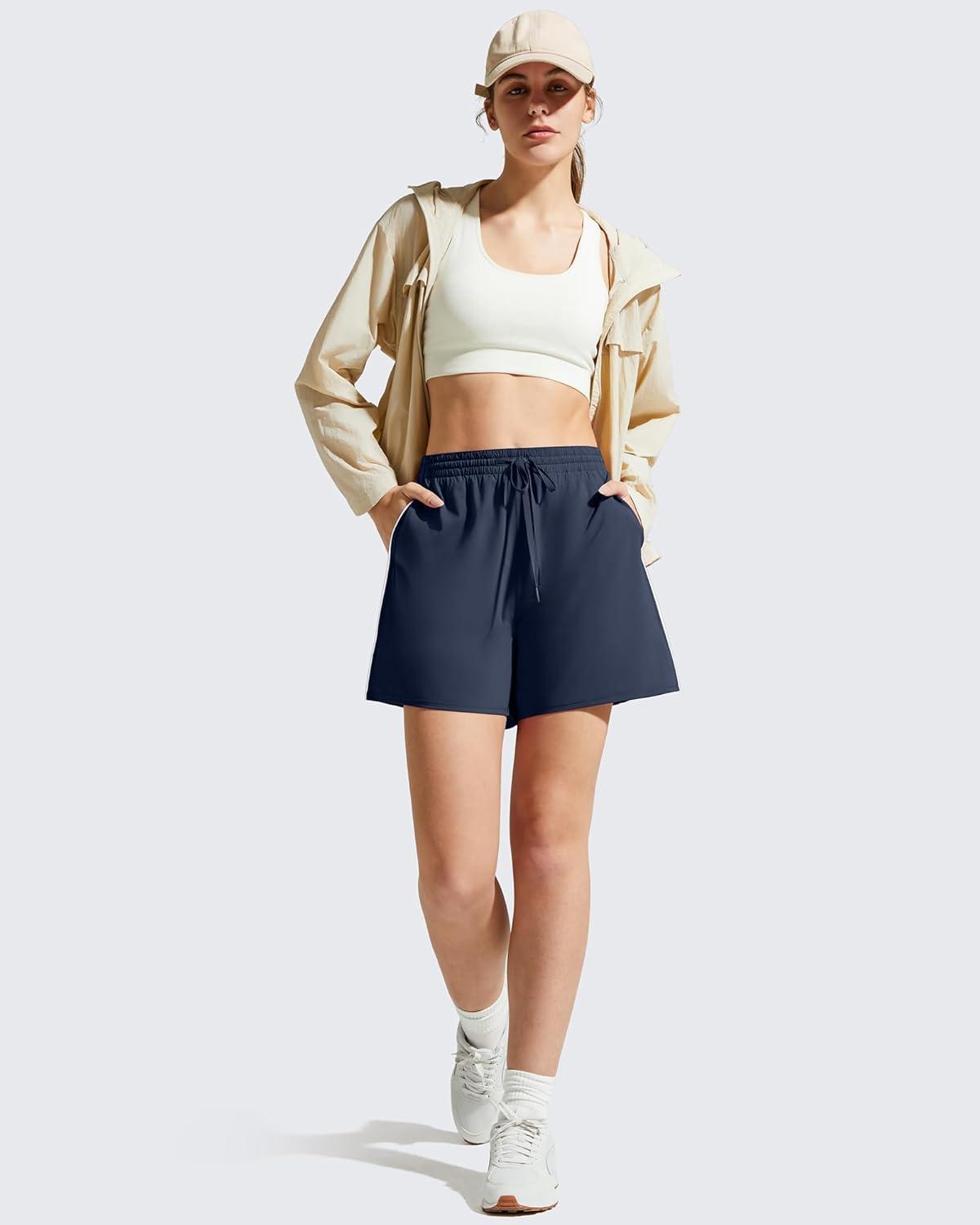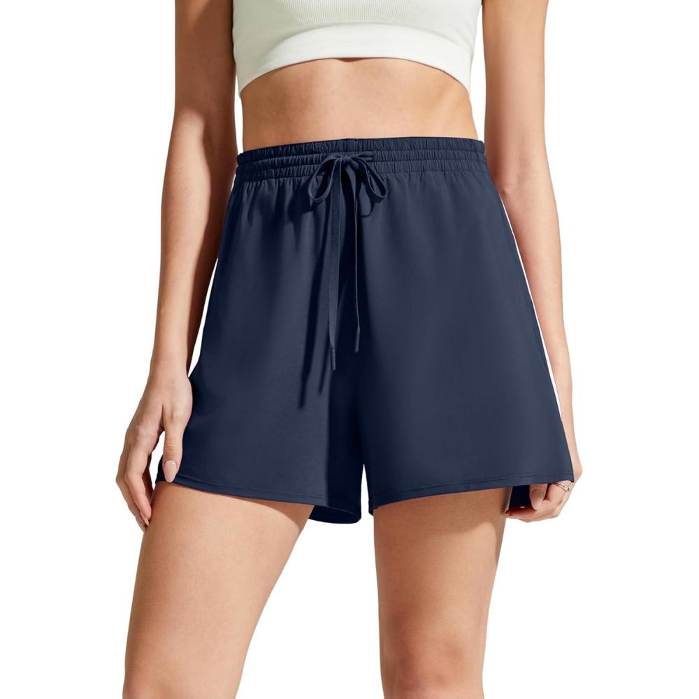G4Free Chillwhisp Split Running Shorts for Women 3"- Built-in Shorts for Athletic Workout Gym(Dark Navy/White)
