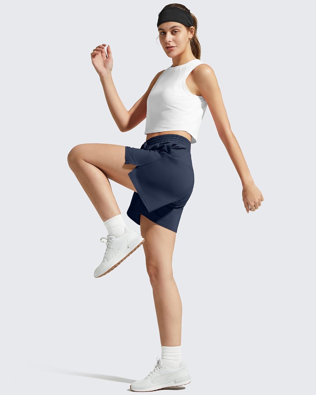 imageG4Free Chillwhisp Split Running Shorts for Women 3 Builtin Shorts for Athletic Workout GymPure Dark Navy