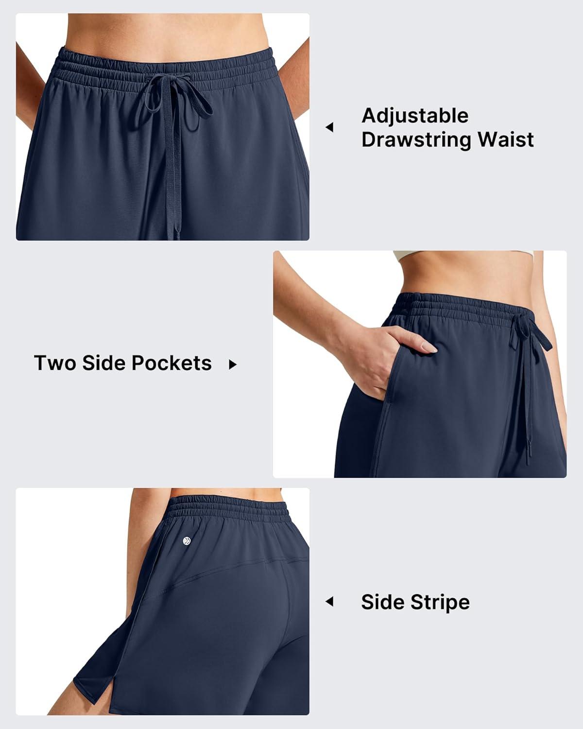 G4Free Chillwhisp Split Running Shorts for Women 3″- Built-in Shorts for Athletic Workout Gym(Pure Dark Navy)