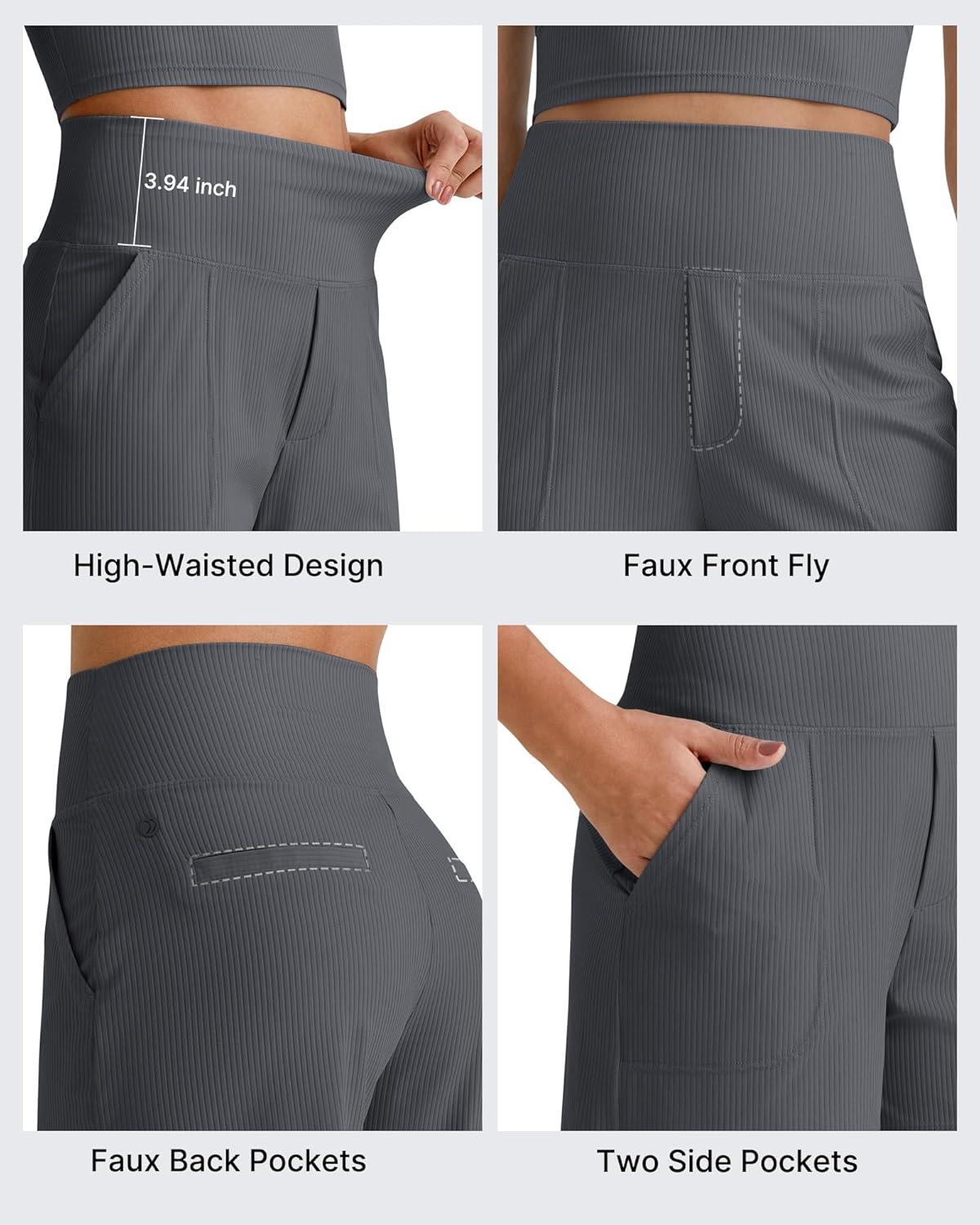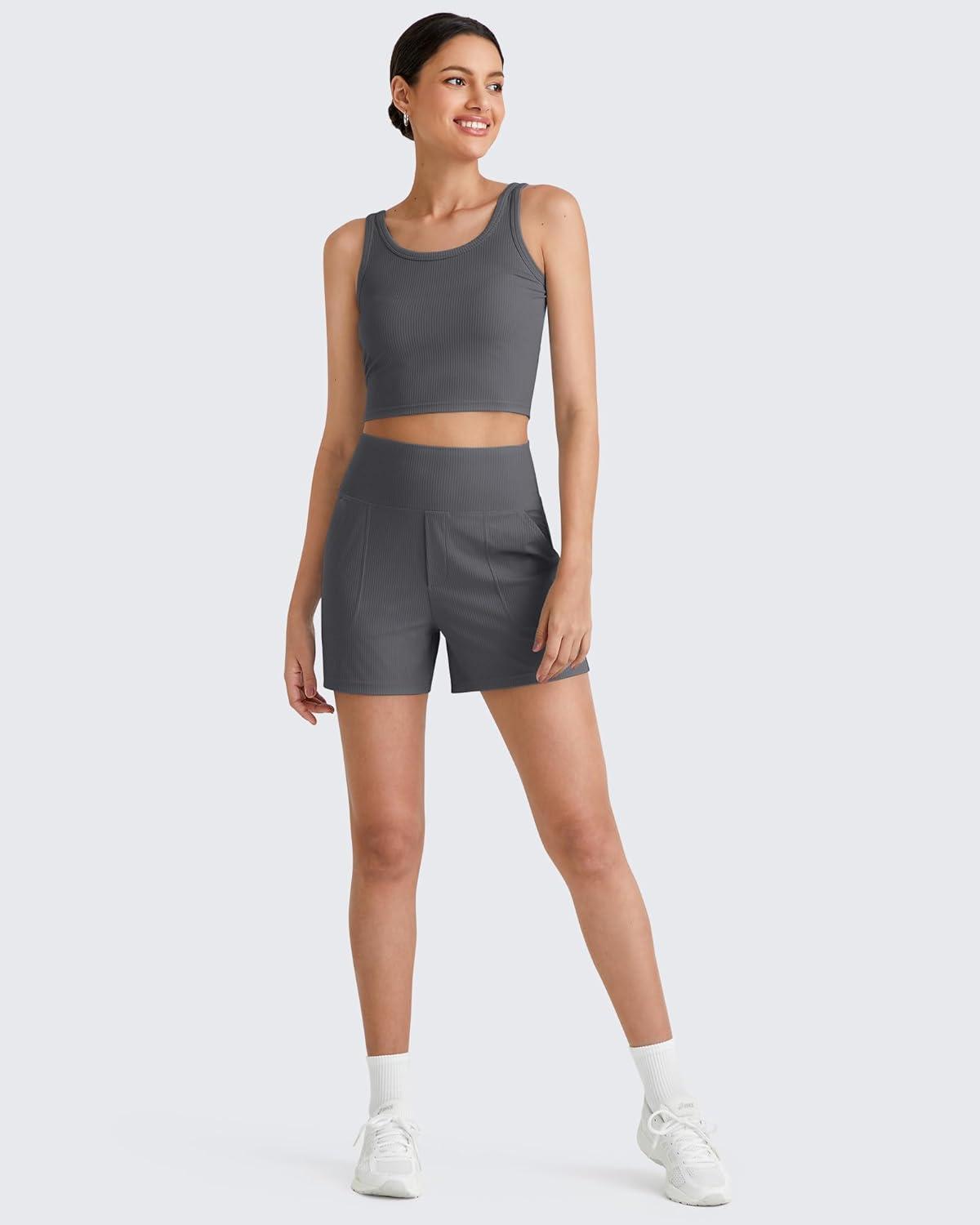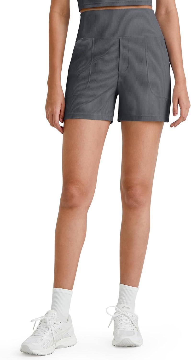 G4Free Comfy Ribbed Womens Shorts Dressy Casual High Waisted Athletic Lounge Trouser Shorts with Side Pockets(Dark Gray)