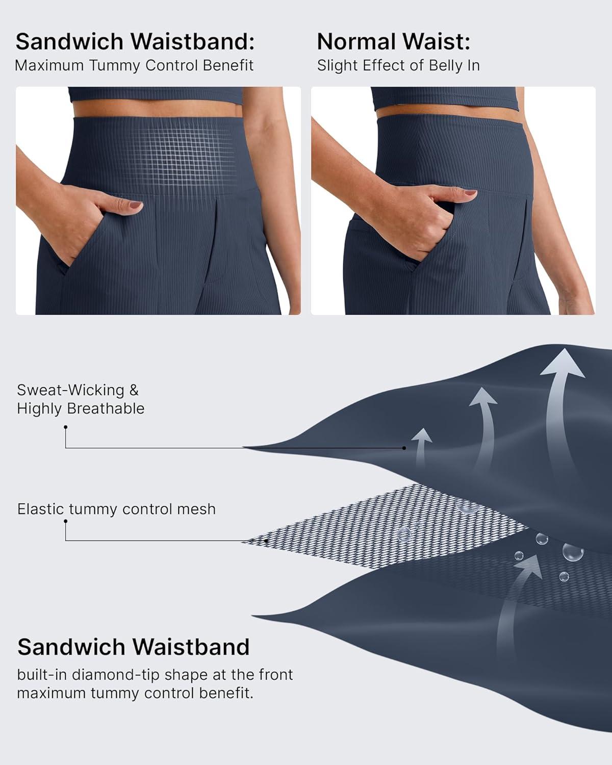 G4Free Comfy Ribbed Womens Shorts Dressy Casual High Waisted Athletic Lounge Trouser Shorts with Side Pockets(Dark Navy)