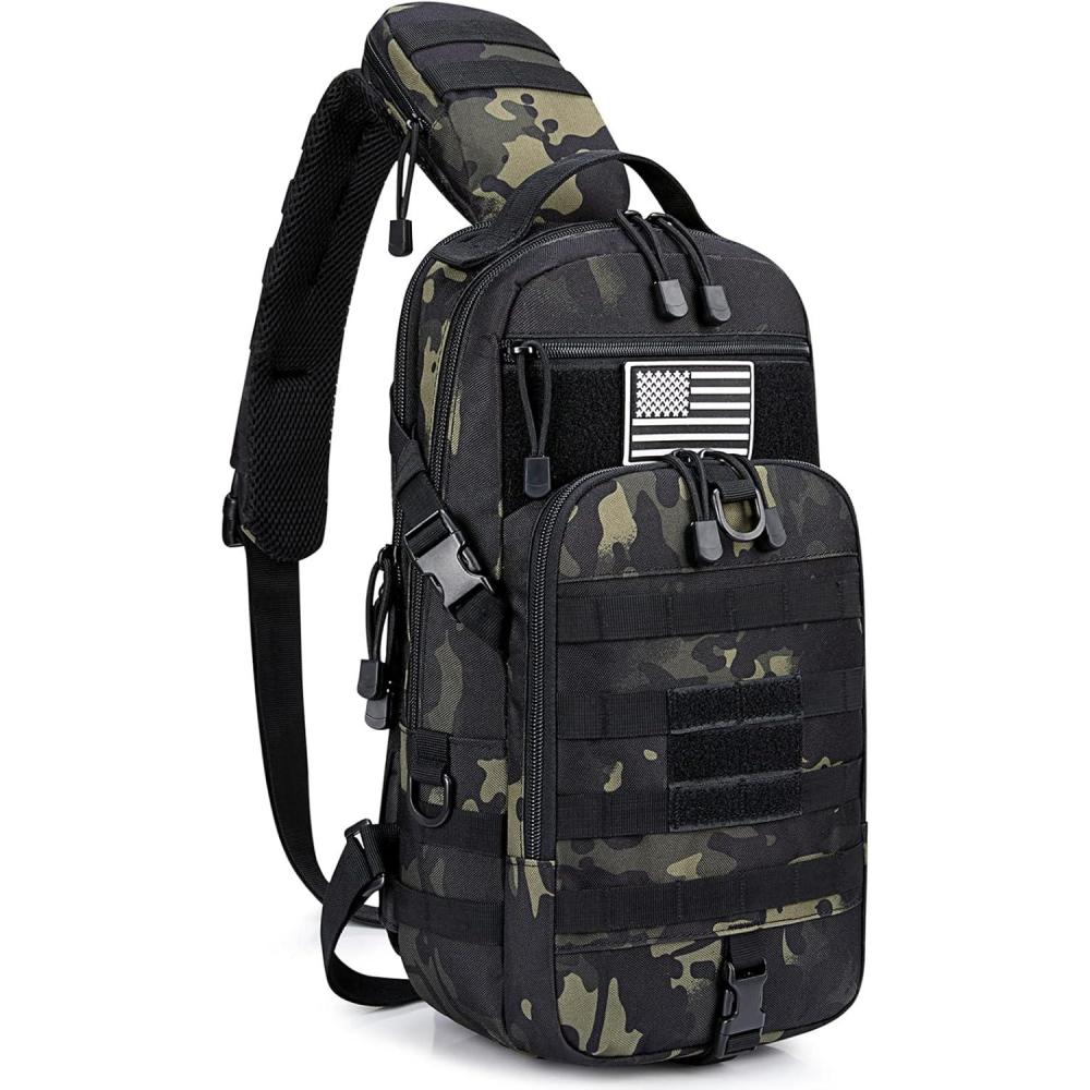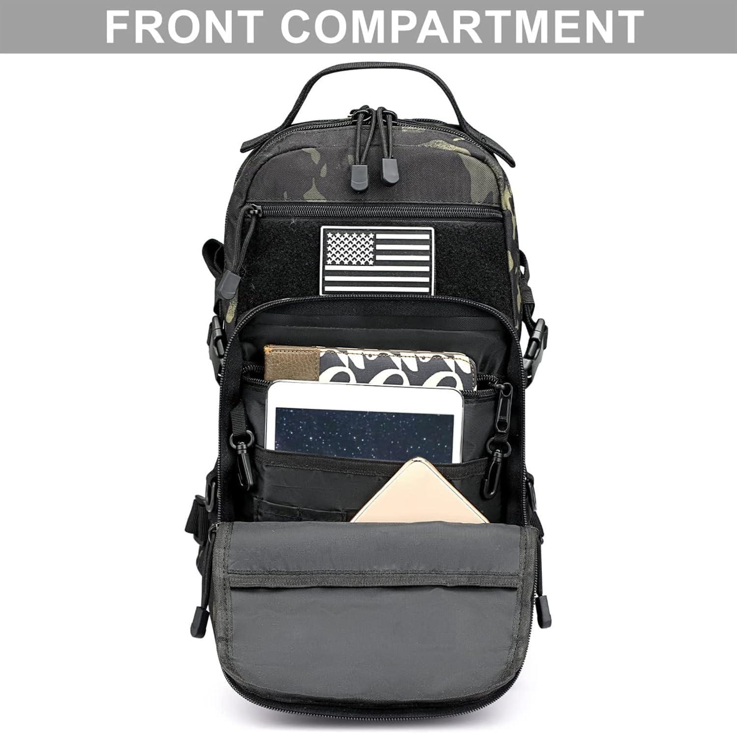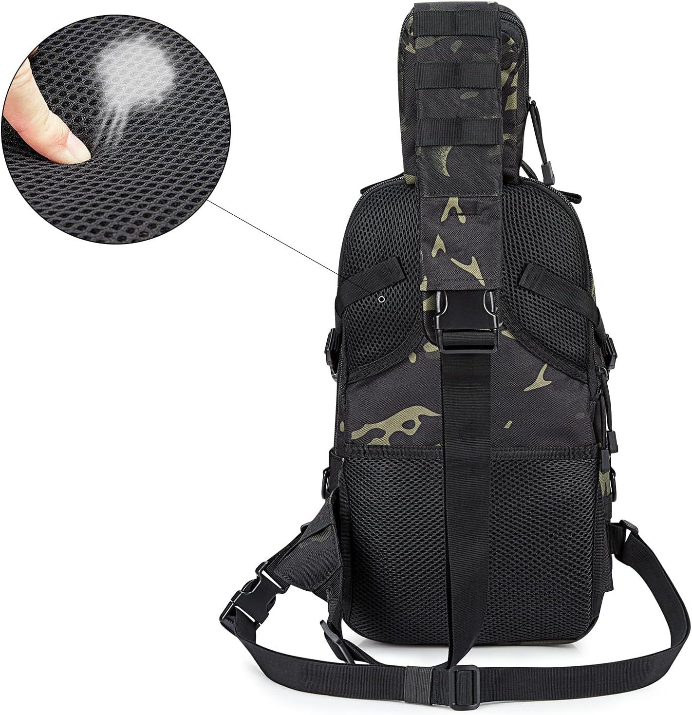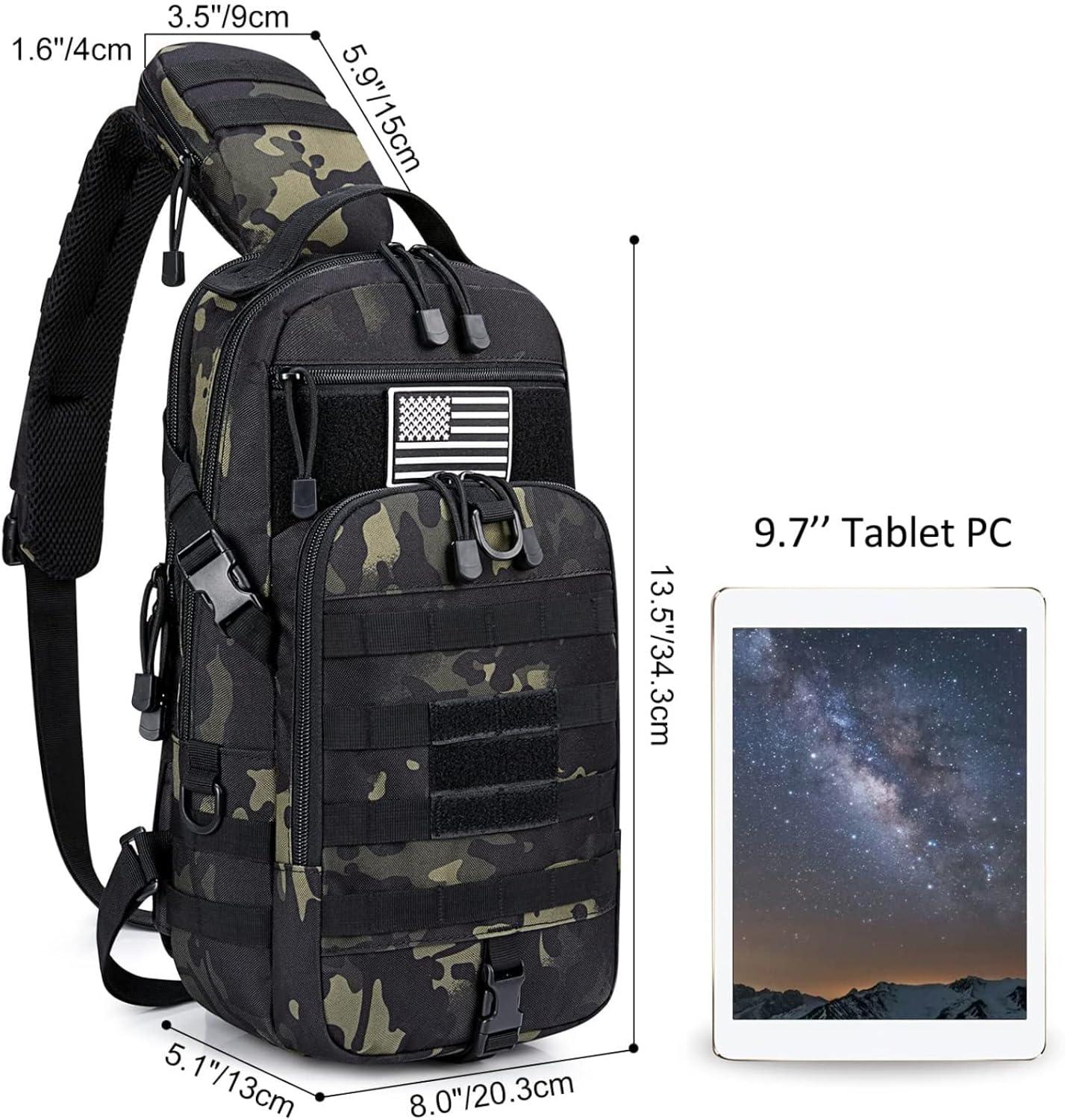 G4Free EDC Bag Tactical Sling Bag Backpack Molle Chest Shoulder Assault Pack Rectangular Outdoor Daypack(Black Cp)