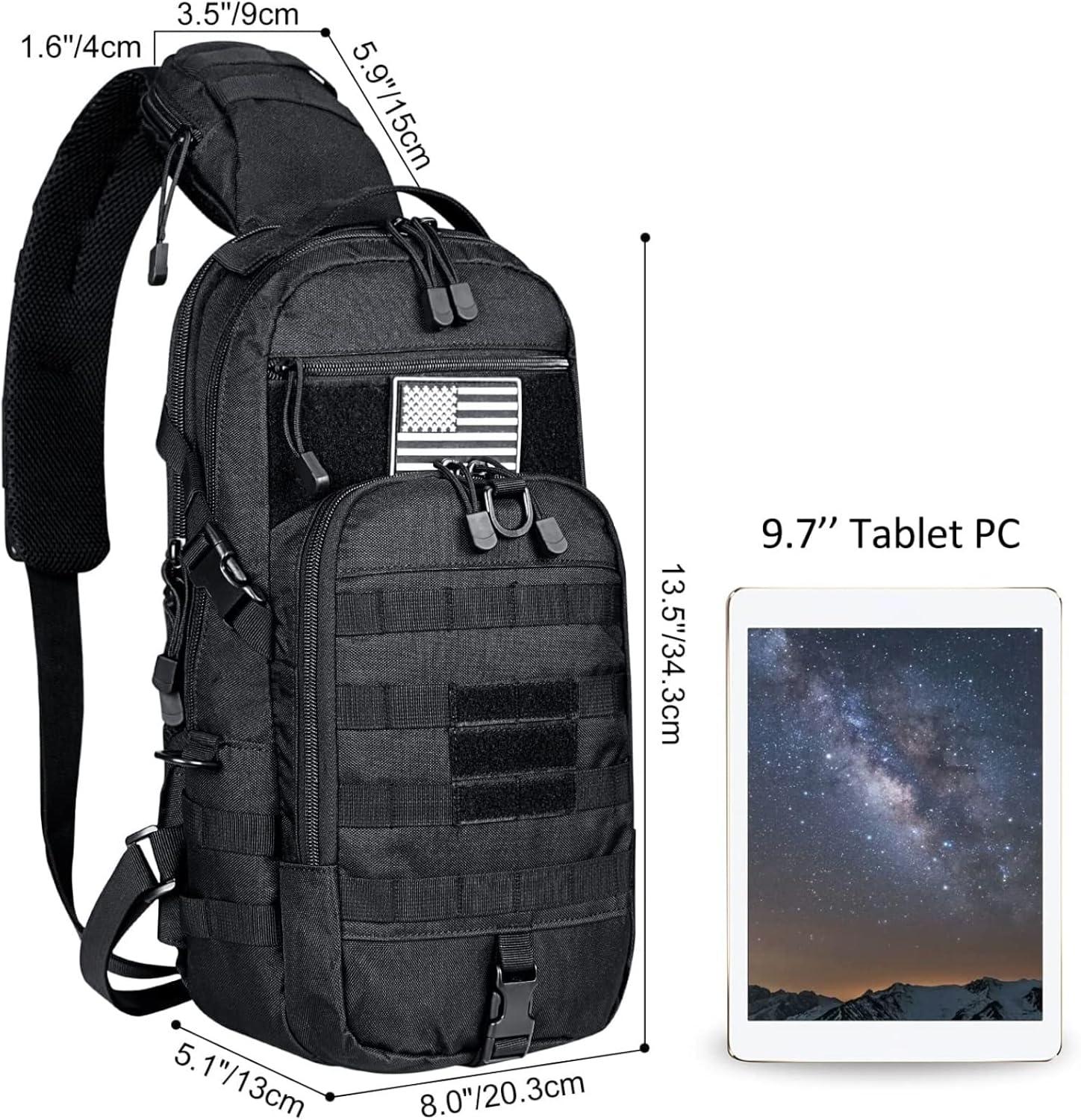 G4Free EDC Bag Tactical Sling Bag Backpack Molle Chest Shoulder Assault Pack Rectangular Outdoor Daypack(Black)