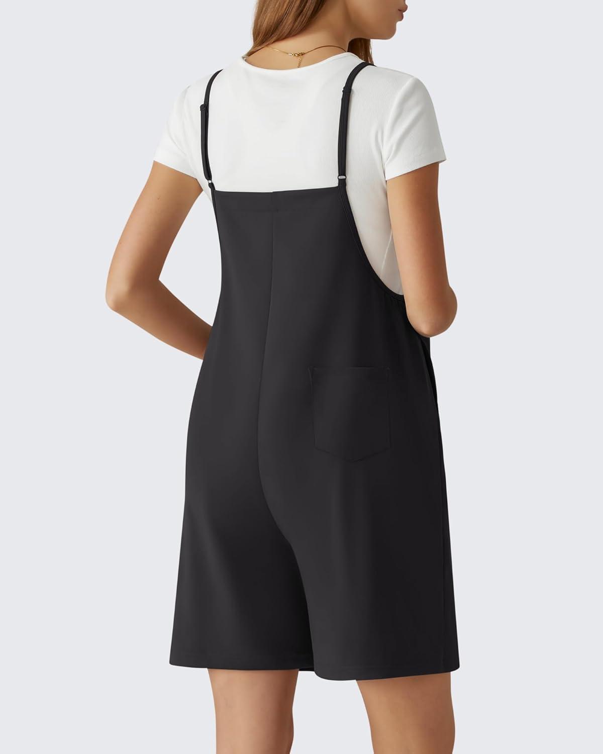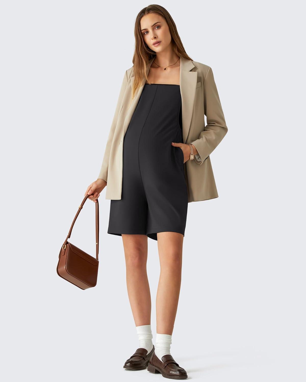 G4Free EverGoing Maternity Overalls with Pockets Adjustable Straps Pregnancy Wide Leg Jumpsuit Shorts Casual Work(Black)
