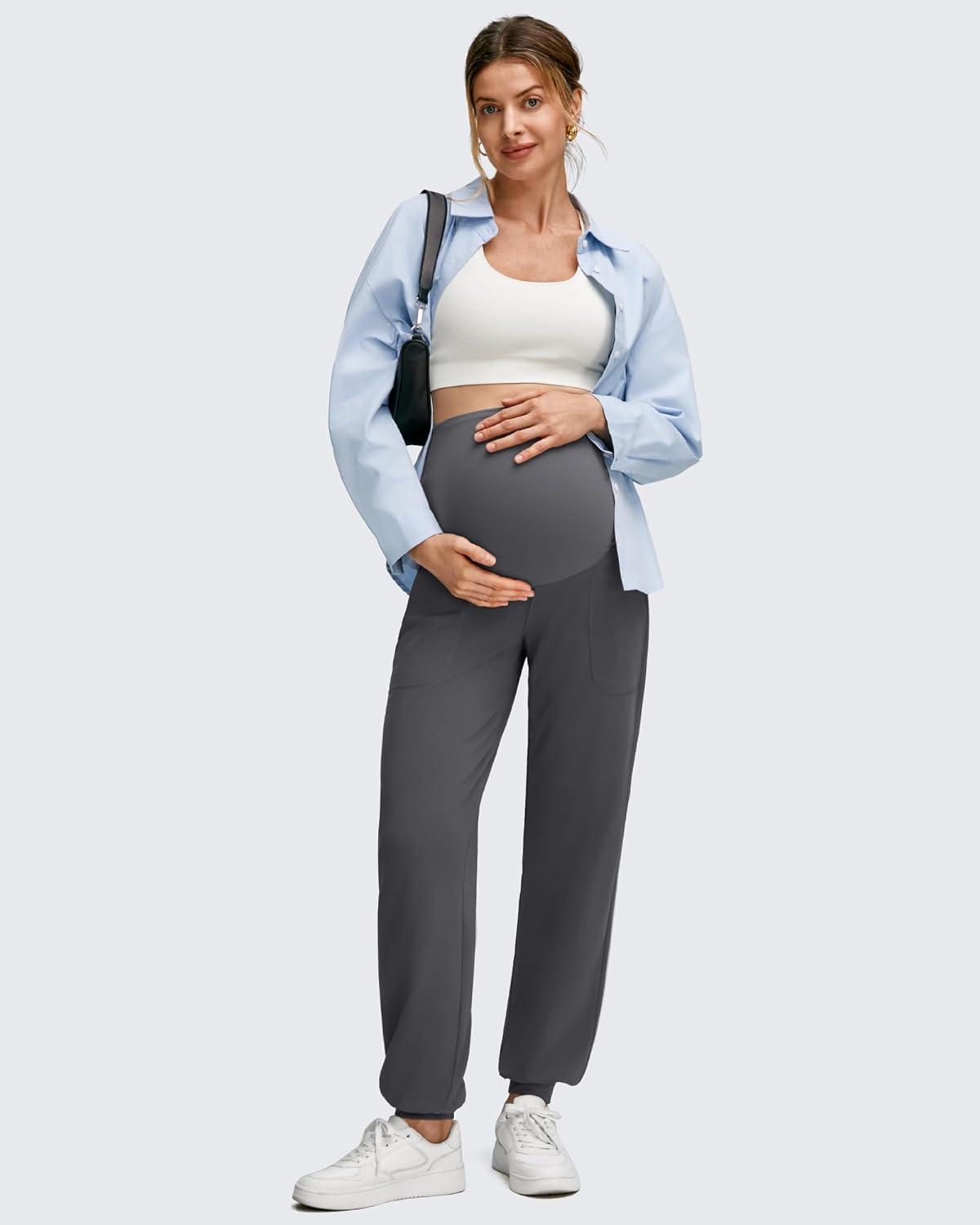 G4Free EverGoing Maternity Pants Stretchy Workout Lounge Pants Over The Belly Pregnancy Joggers with Pockets(Dark Gray)