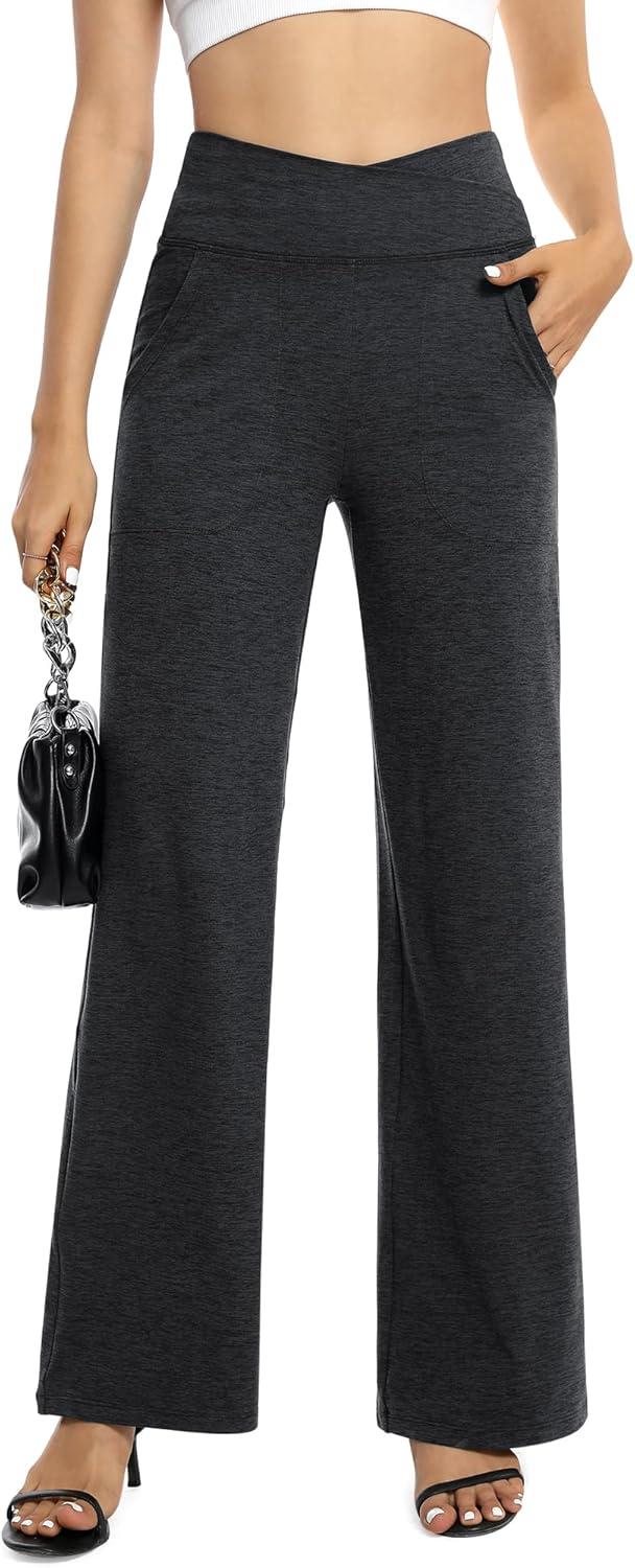 G4Free EverGoing Wide Leg Pants for Women Loose Yoga Pants with Pockets Petite/Regular/Tall Stretch Casual Lounge Pants(Charcoal Heather)
