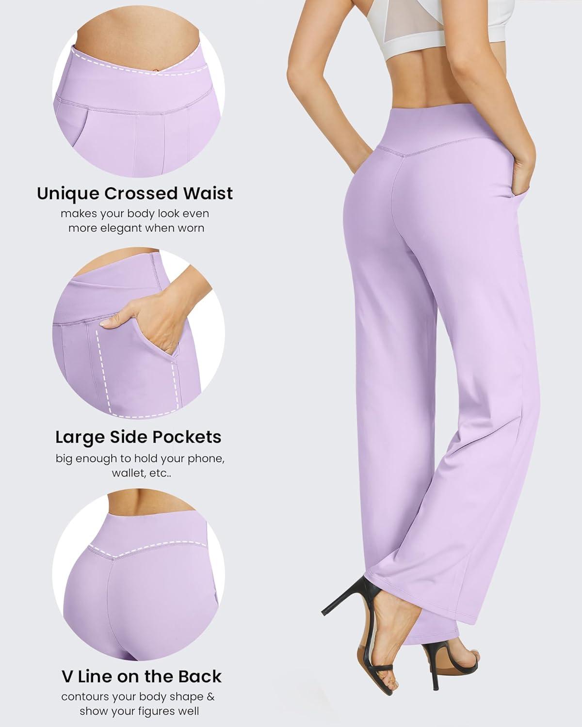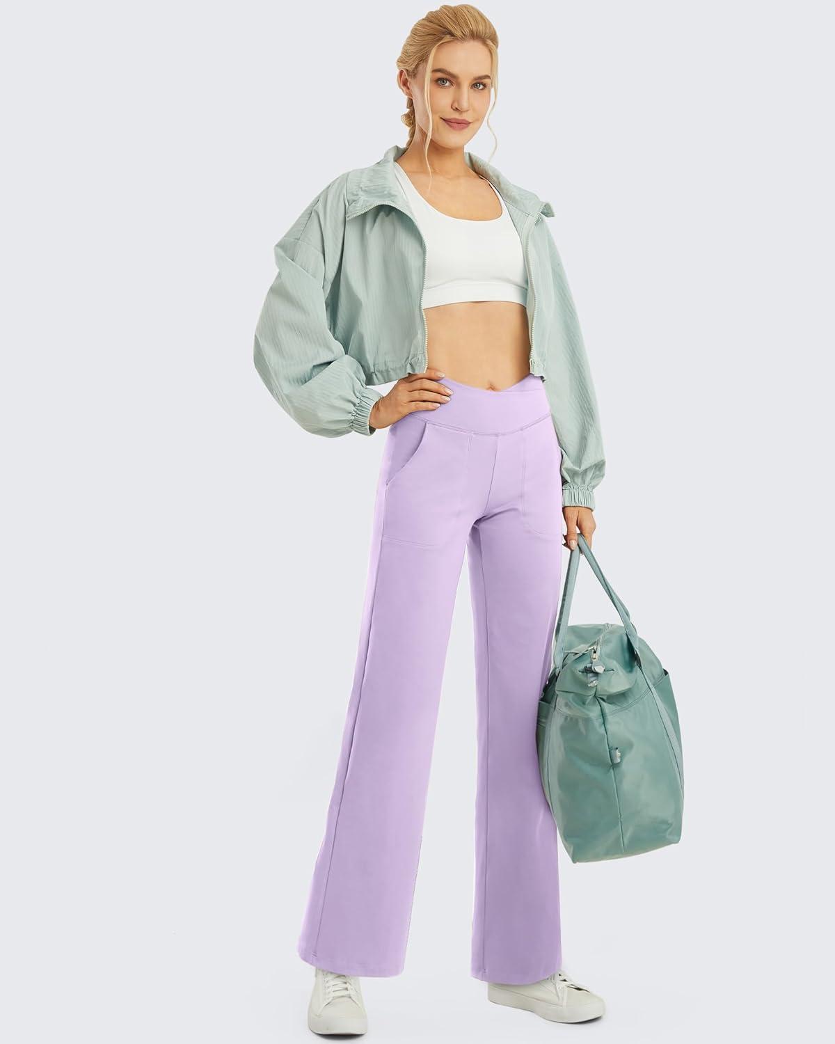 imageG4Free EverGoing Wide Leg Pants for Women Loose Yoga Pants with Pockets PetiteRegularTall Stretch Casual Lounge PantsLavender