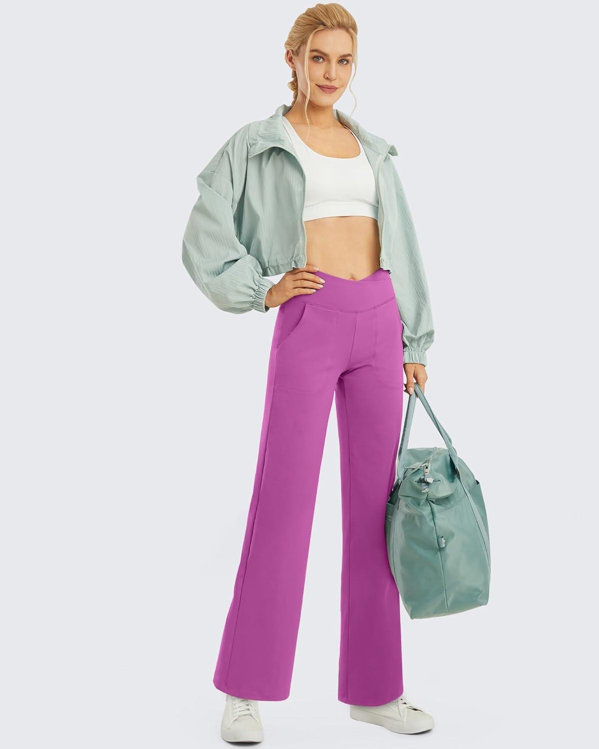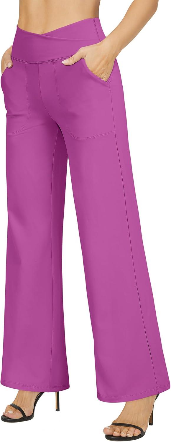 imageG4Free EverGoing Wide Leg Pants for Women Loose Yoga Pants with Pockets PetiteRegularTall Stretch Casual Lounge PantsRaspberry Purple