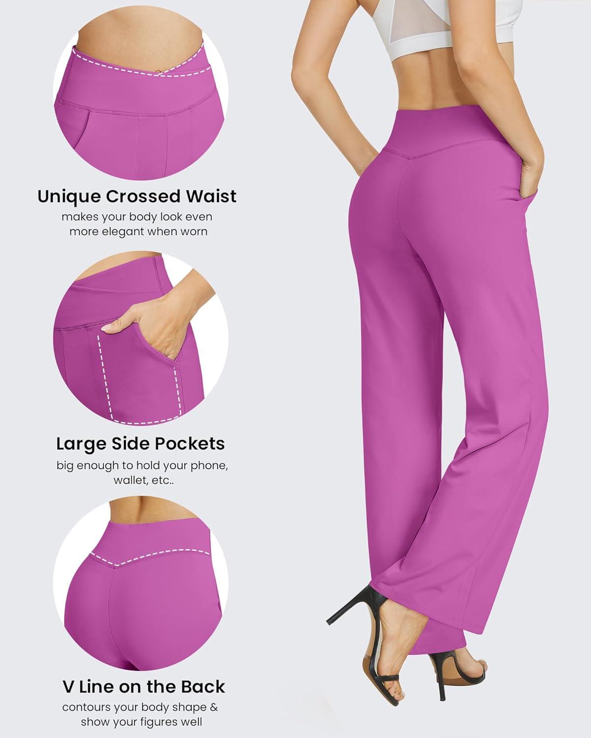 G4Free EverGoing Wide Leg Pants for Women Loose Yoga Pants with Pockets Petite/Regular/Tall Stretch Casual Lounge Pants(Raspberry Purple)