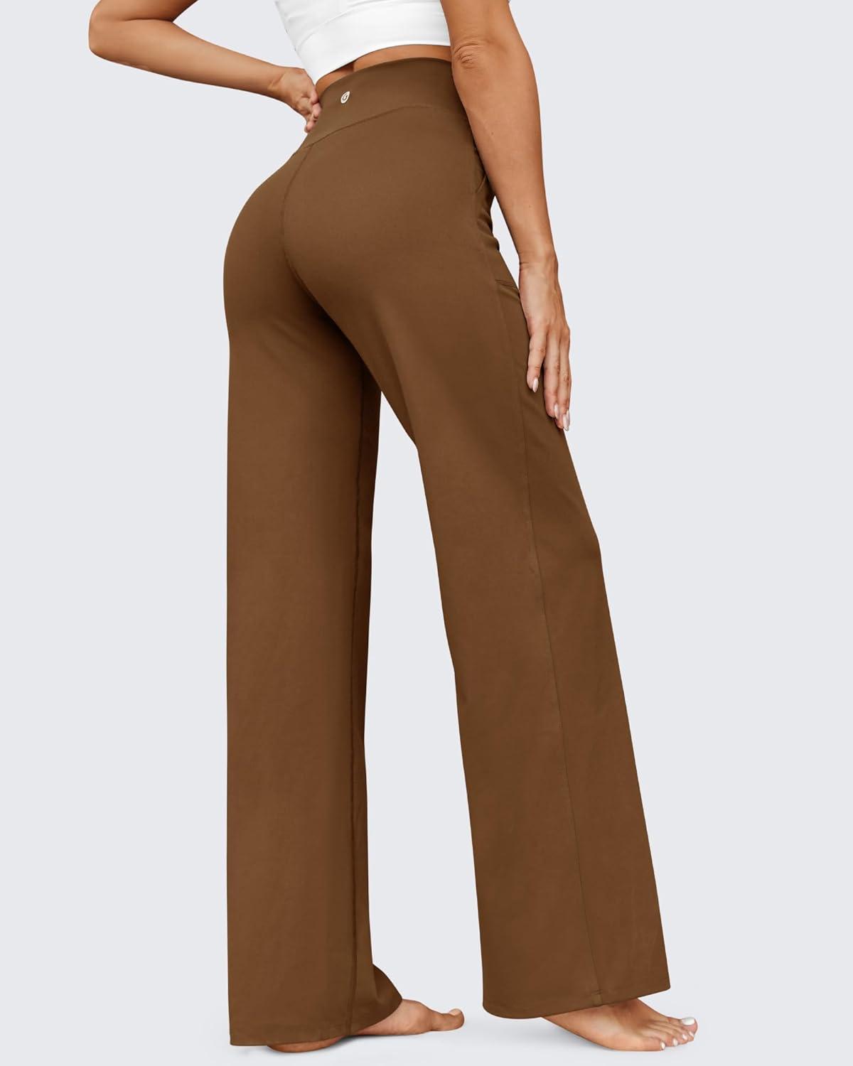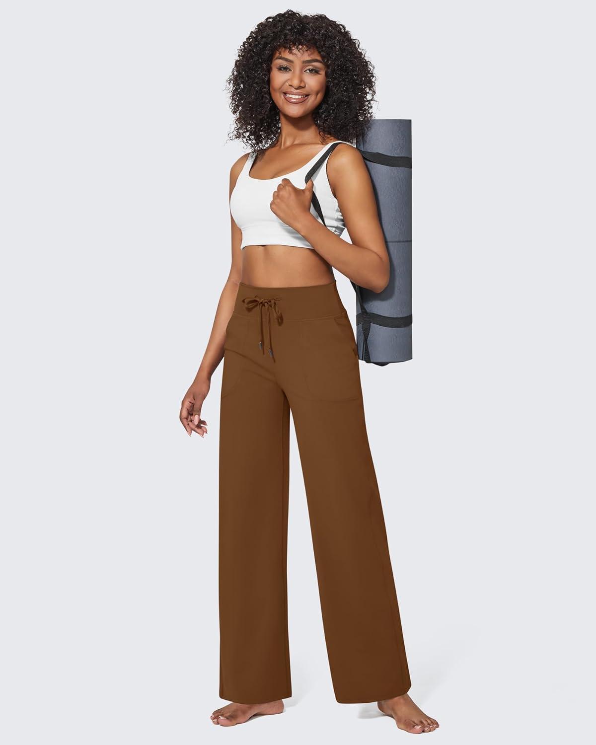 G4Free EverGoing Wide Leg Pants for Women Yoga Pants High Waist Sweatpants with Pockets Stretch Lounge Pants Comfy Workout(Dark Coffee)