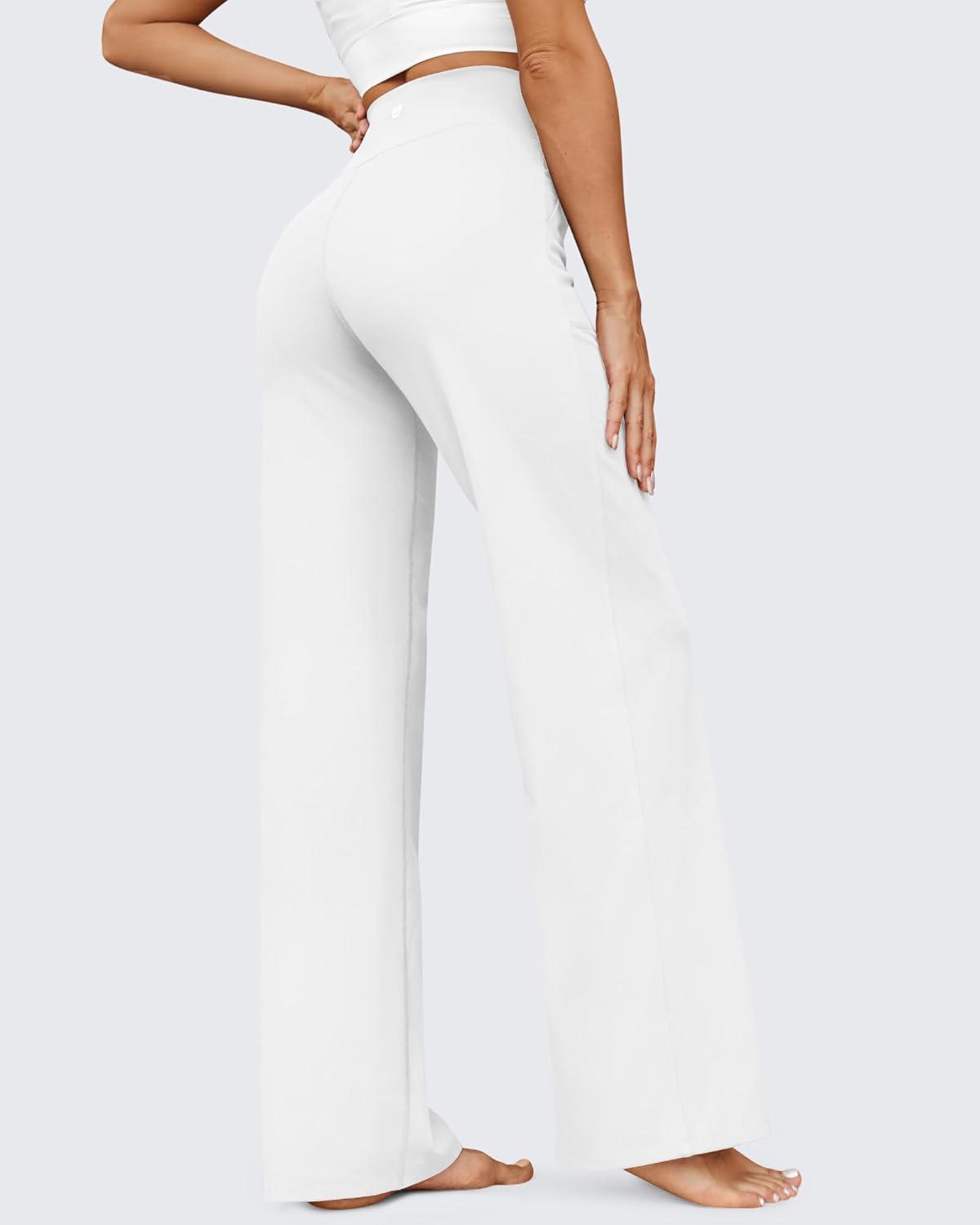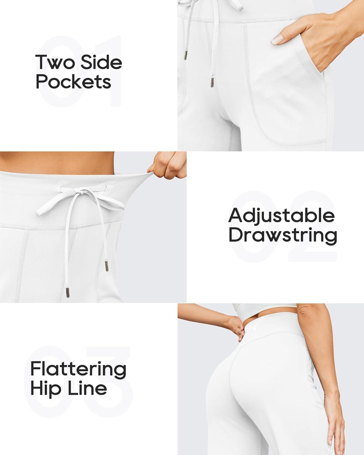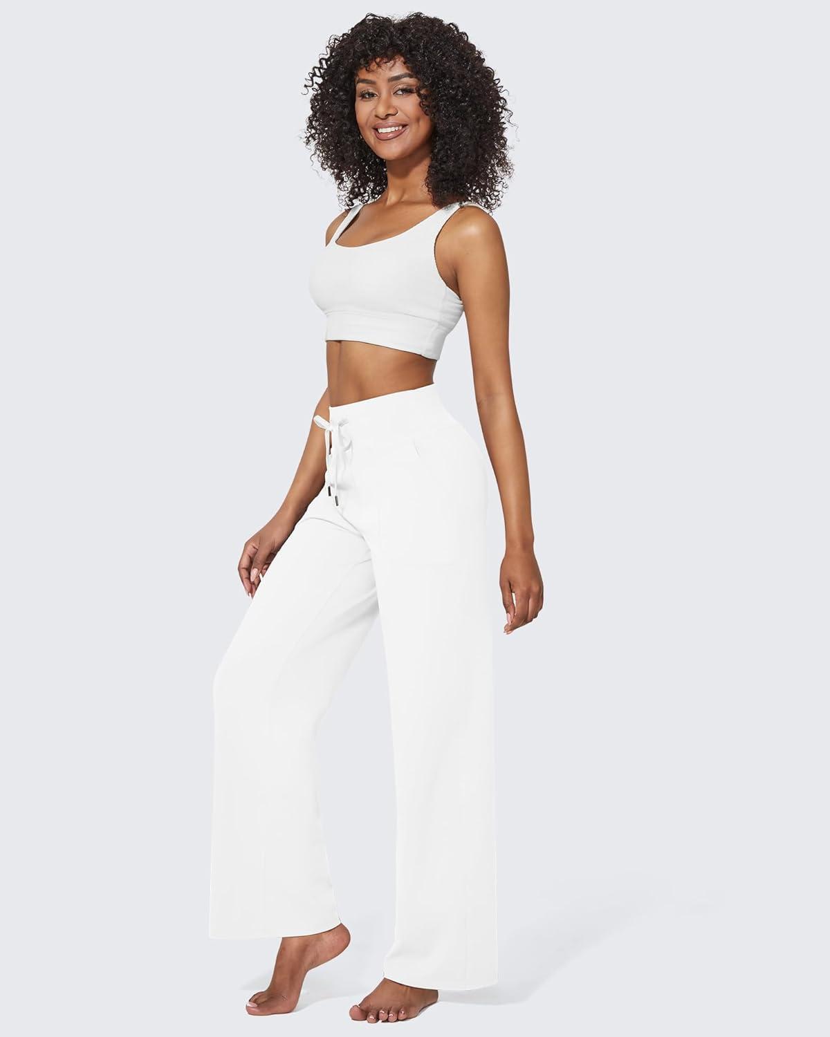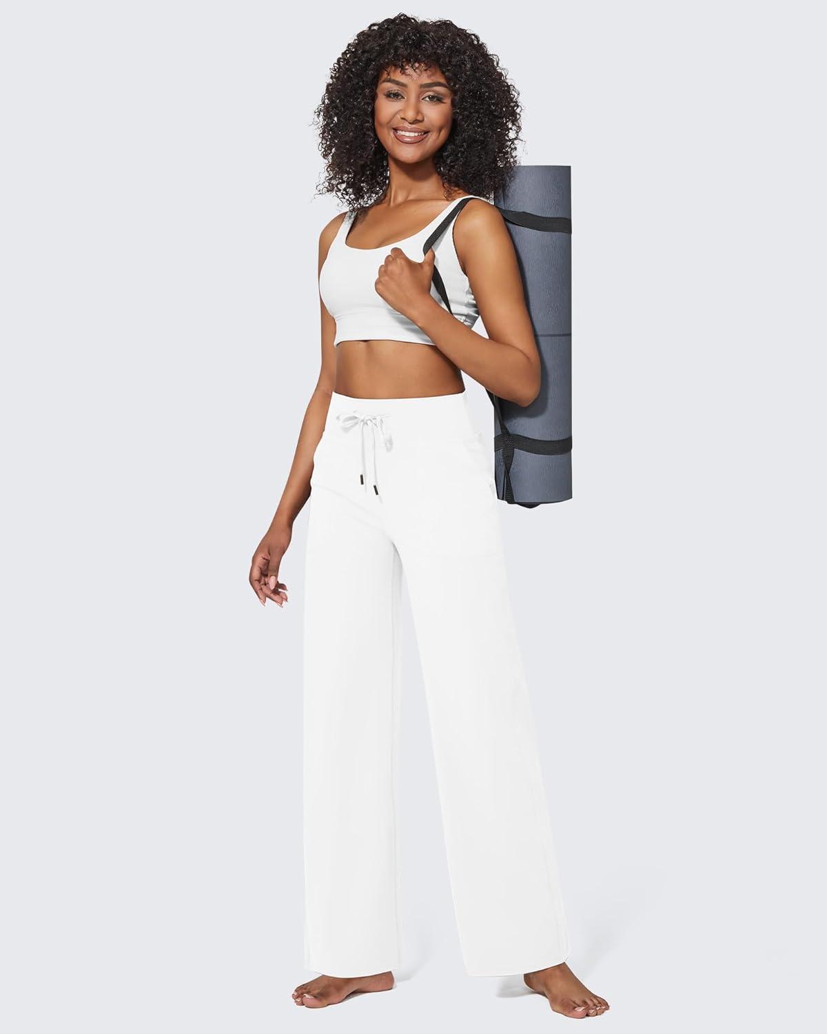 G4Free EverGoing Wide Leg Pants for Women Yoga Pants High Waist Sweatpants with Pockets Stretch Lounge Pants Comfy Workout(White)