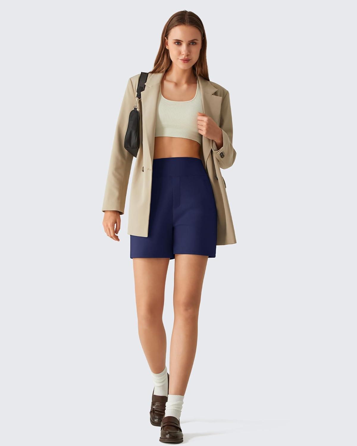 G4Free EverGoing Womens Athletic Shorts 6″ – High Waisted Wide Leg Dressy Casual Shorts with Pockets(Royal Blue)