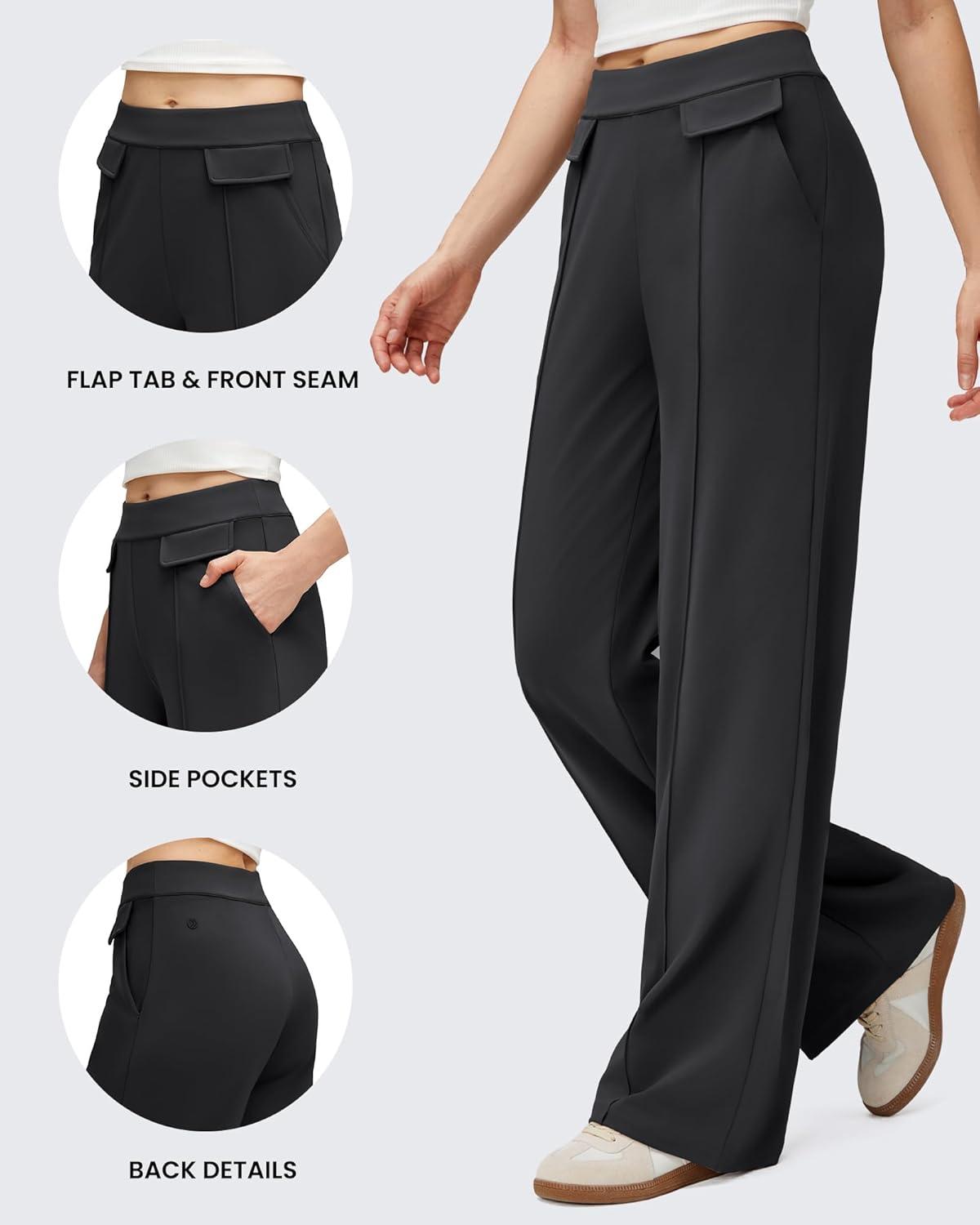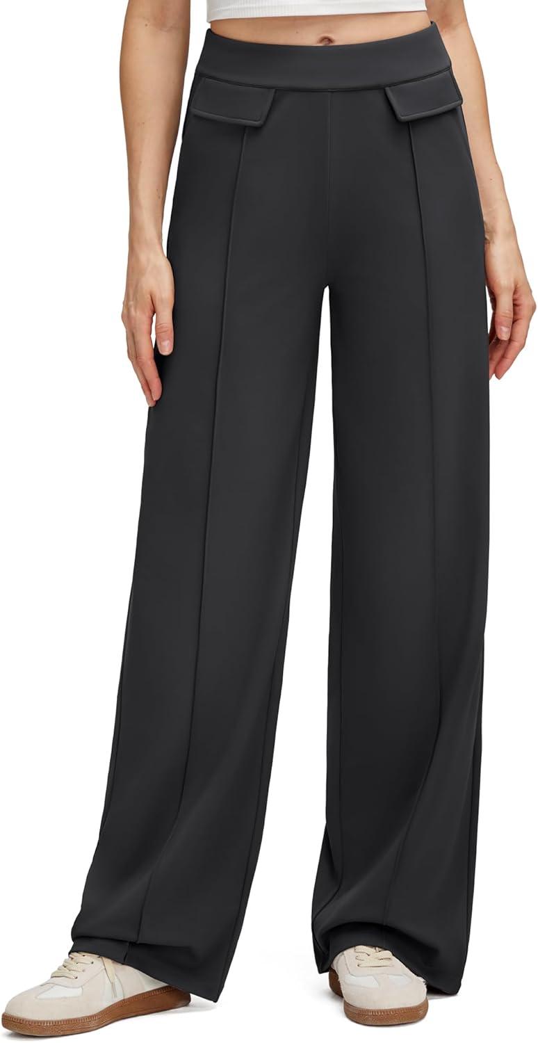 G4Free EverGoing Women’s Wide Leg Pants High Waisted Yoga Pants Dressy Casual Trousers with Pockets(Black)