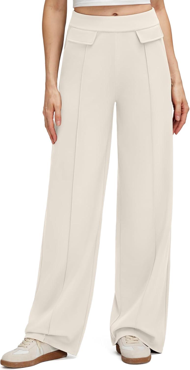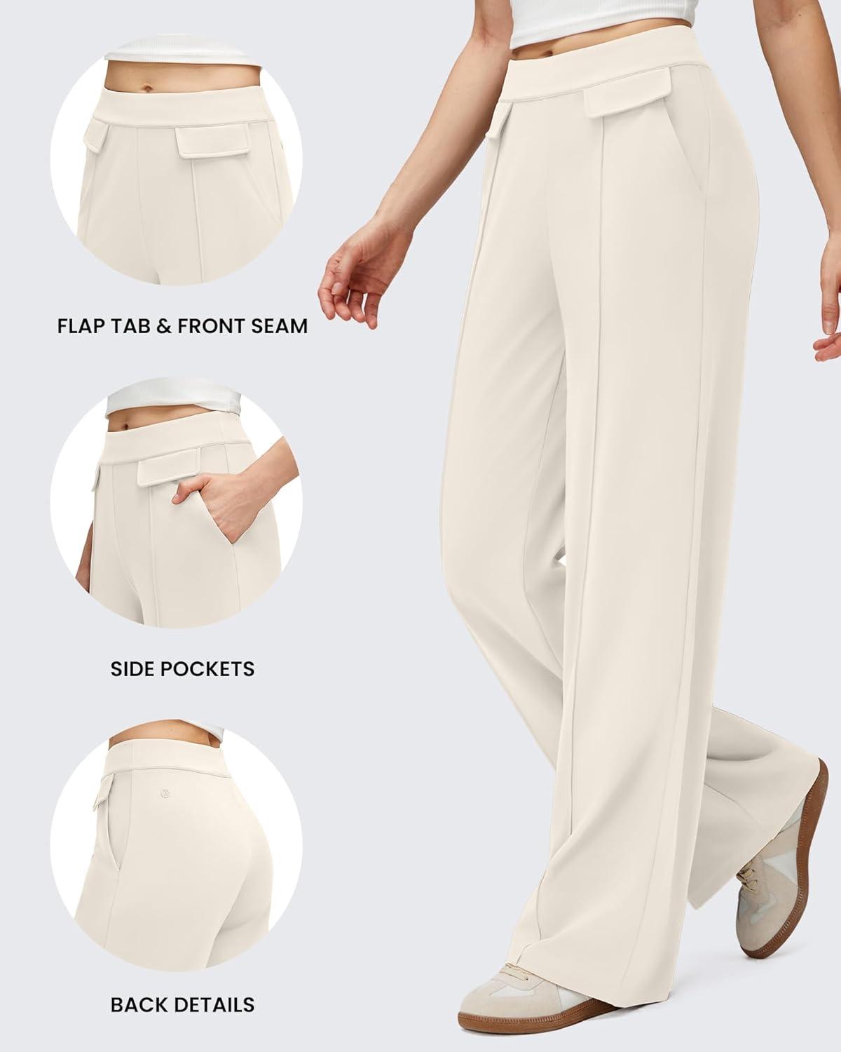 G4Free EverGoing Women’s Wide Leg Pants High Waisted Yoga Pants Dressy Casual Trousers with Pockets(Ivory)