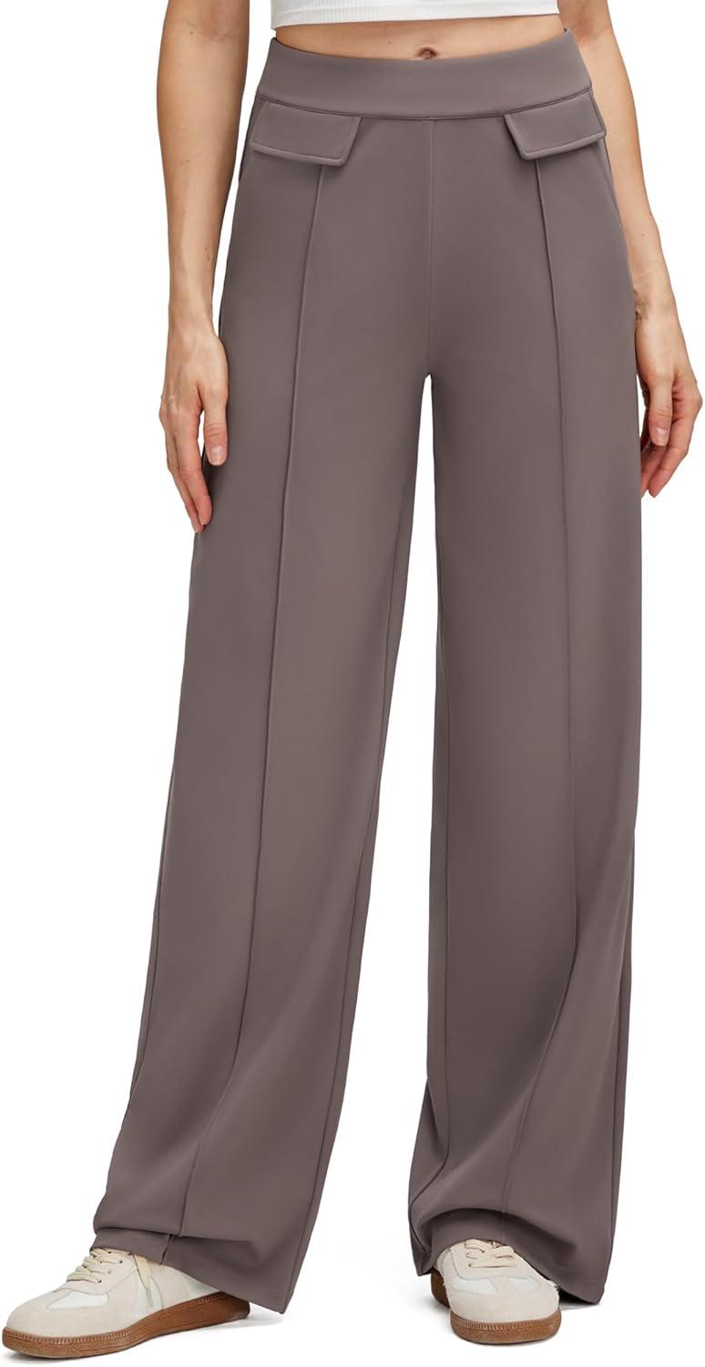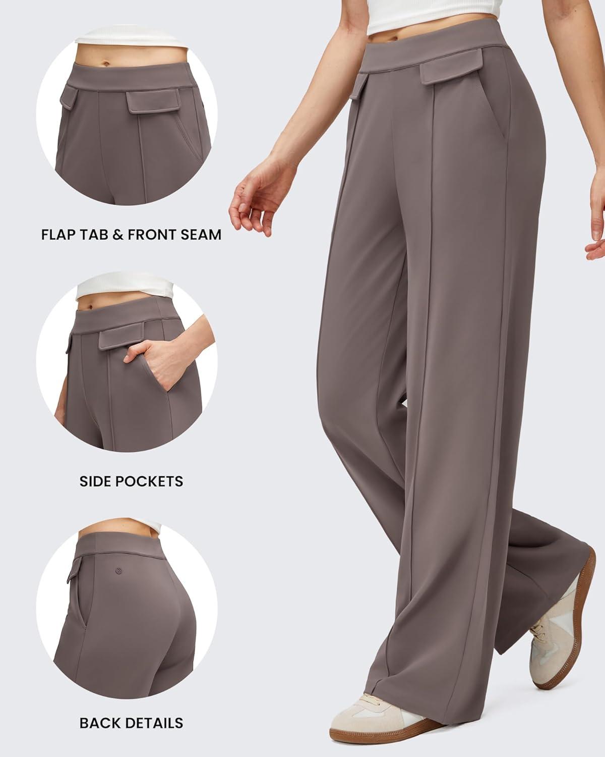 G4Free EverGoing Women’s Wide Leg Pants High Waisted Yoga Pants Dressy Casual Trousers with Pockets(Dark Grey)