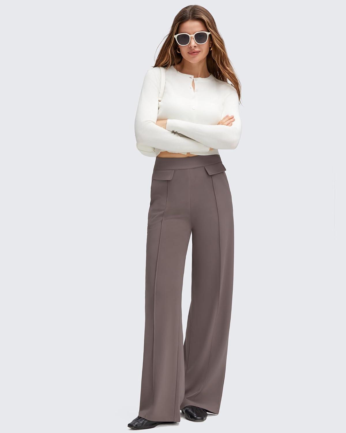 imageG4Free EverGoing Womens Wide Leg Pants High Waisted Yoga Pants Dressy Casual Trousers with PocketsDark Grey
