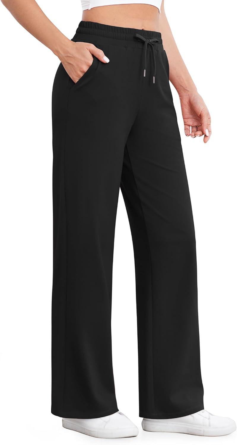 G4Free EverGoing Women’s Wide Leg Pants High Waisted Yoga Pants with Pockets Casual Drawstring Sweatpants(Black)
