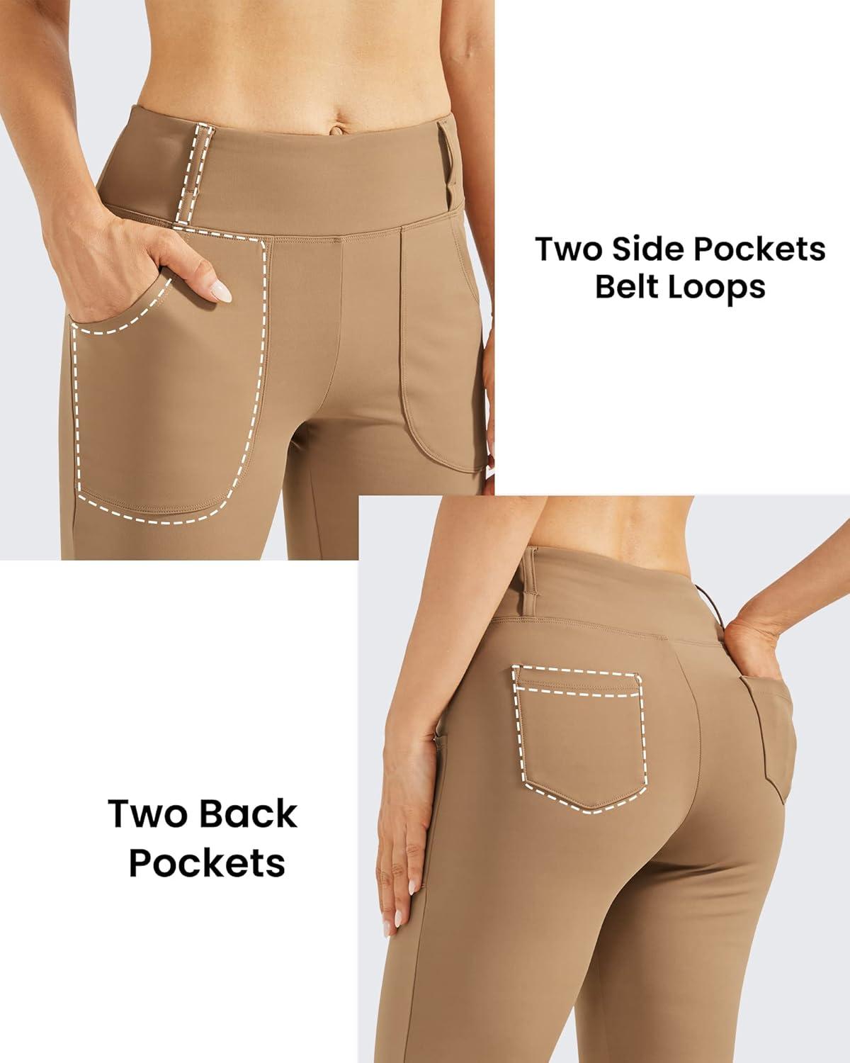 G4Free Fleece Lined Leggings Women Yoga Dress Pants with 4 Pockets Stretchy Work Pants Business Casual 29″/31″/33″(Brown)