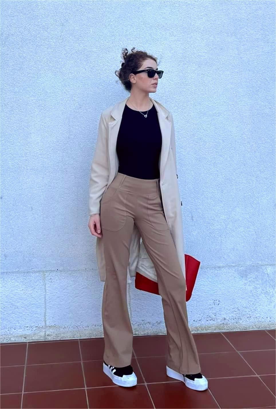 imageG4Free Fleece Lined Leggings Women Yoga Dress Pants with 4 Pockets Stretchy Work Pants Business Casual 293133Brown
