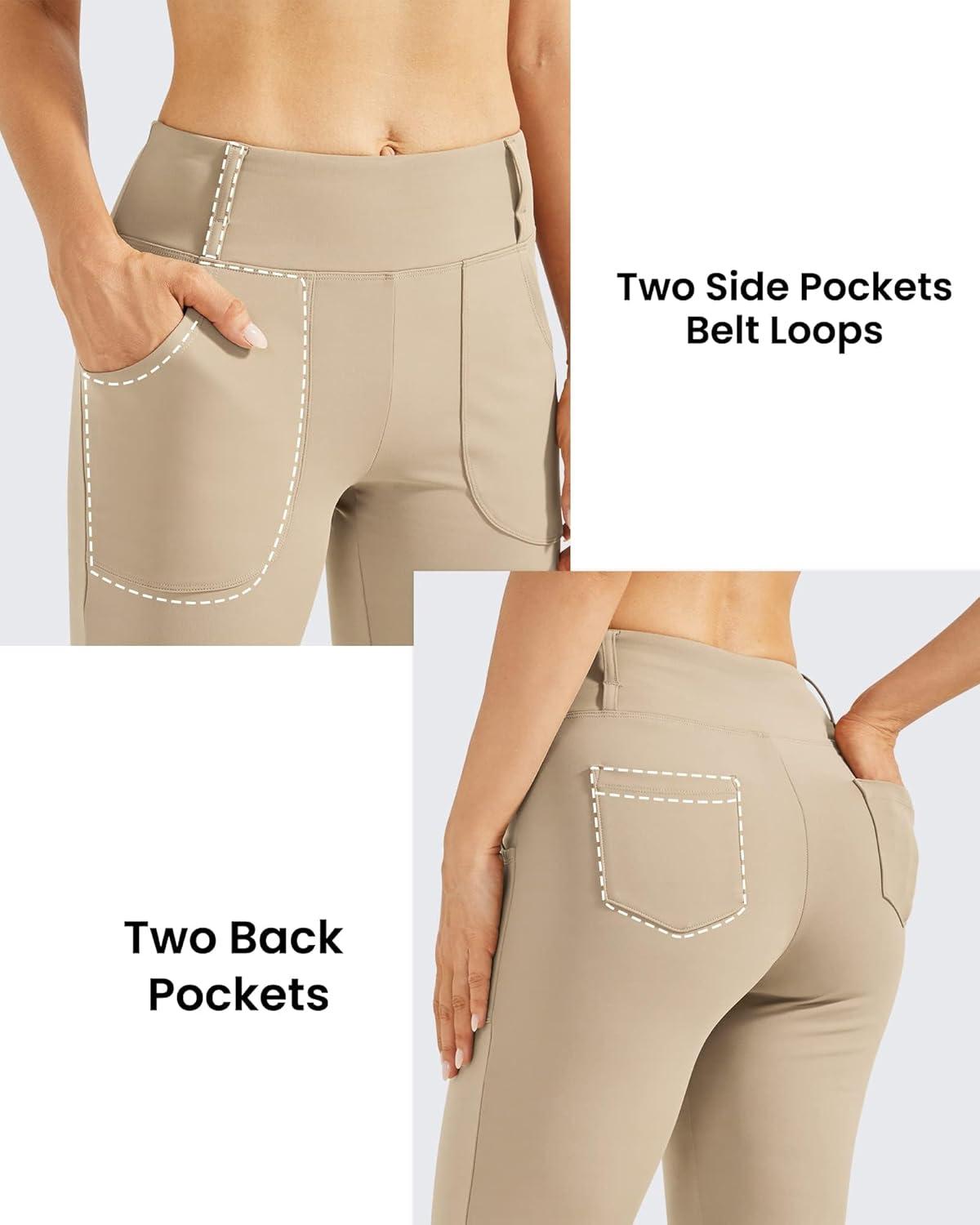 G4Free Fleece Lined Leggings Women Yoga Dress Pants with 4 Pockets Stretchy Work Pants Business Casual 29"/31"/33"(Khaki)