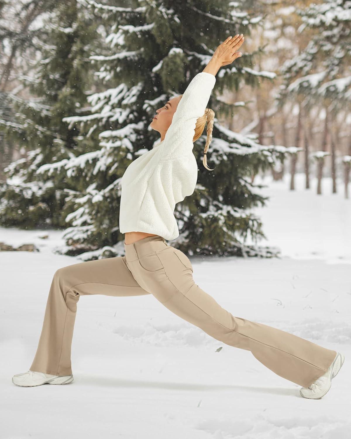 G4Free Fleece Lined Leggings Women Yoga Dress Pants with 4 Pockets Stretchy Work Pants Business Casual 29″/31″/33″(Khaki)