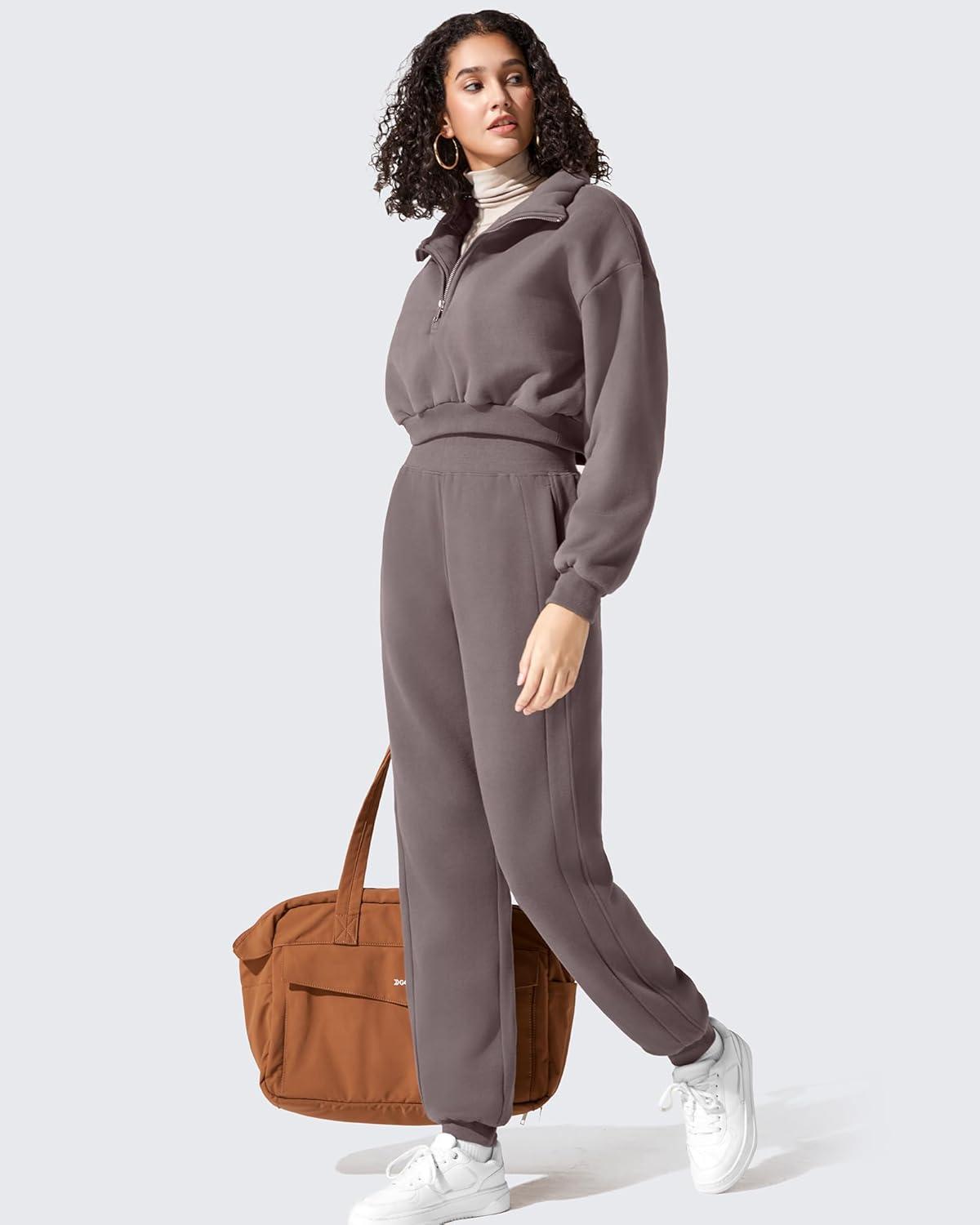 G4Free Smoofit Fleece Lined Joggers Sweatpants Women High Waist Casual Lounge with Pockets Warm Pants Workout Winter Travel(Black)