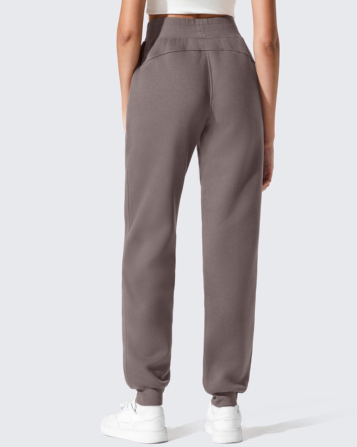 G4Free Flurrylux Cotton Fleece Lined Joggers for Women Elastic Waist Scrub Sweatpants Tapered Leg Track Pants(Taupe)