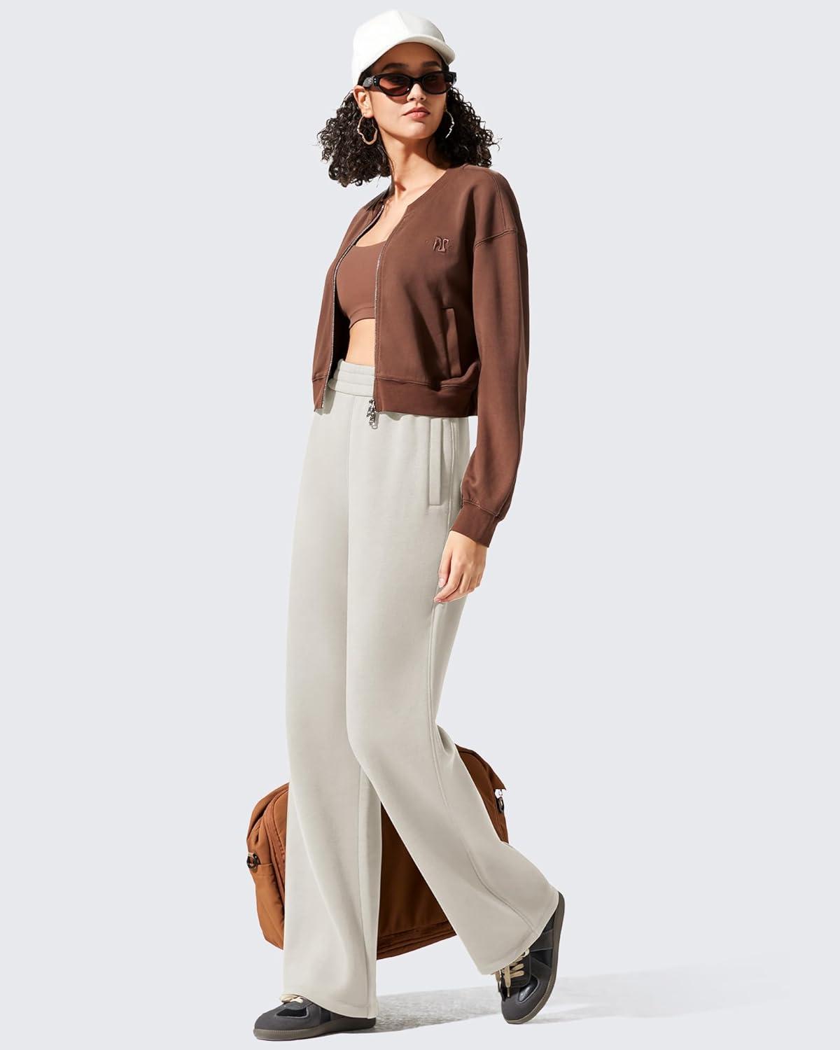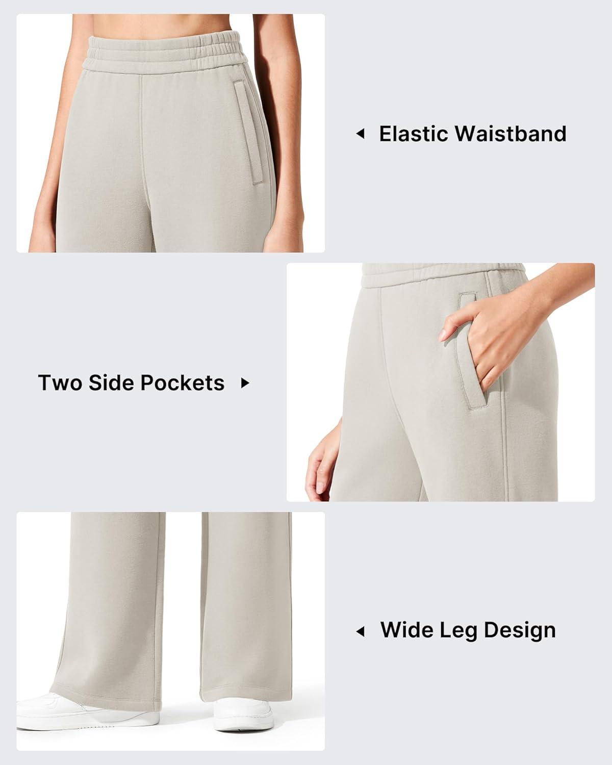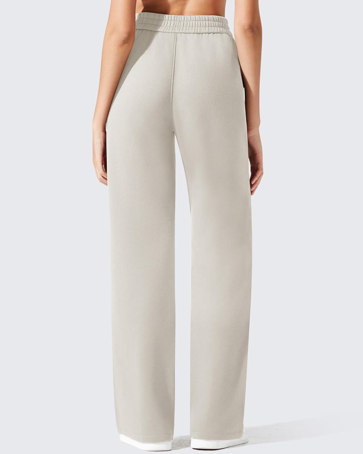 G4Free Flurrylux Cotton Fleece Lined Sweatpants Women Elastic Waist Wide Leg Lounge Pants Warm Winter(Dusty Taupe)