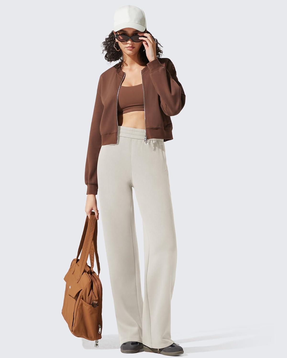 imageG4Free Flurrylux Cotton Fleece Lined Sweatpants Women Elastic Waist Wide Leg Lounge Pants Warm WinterTerracotta Brown
