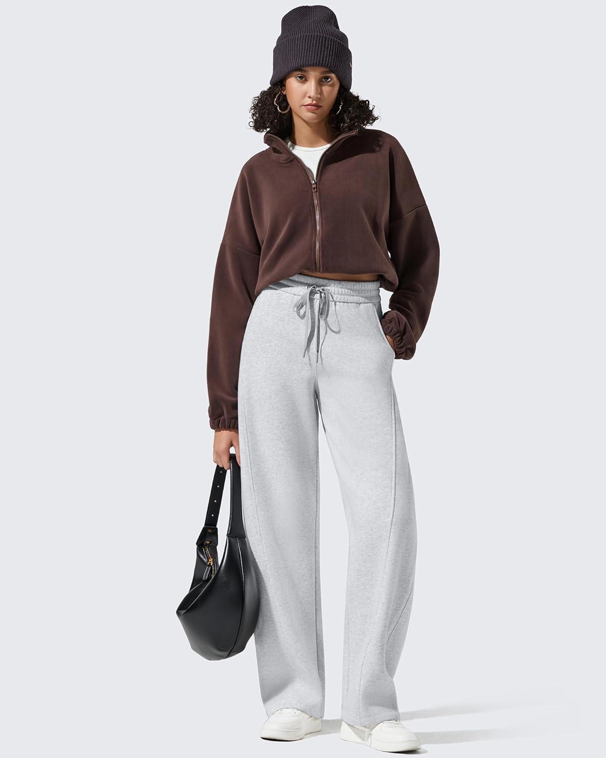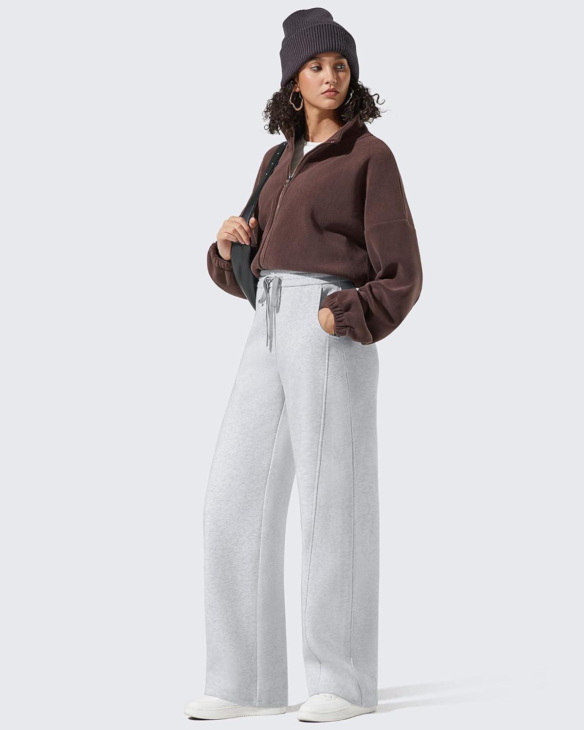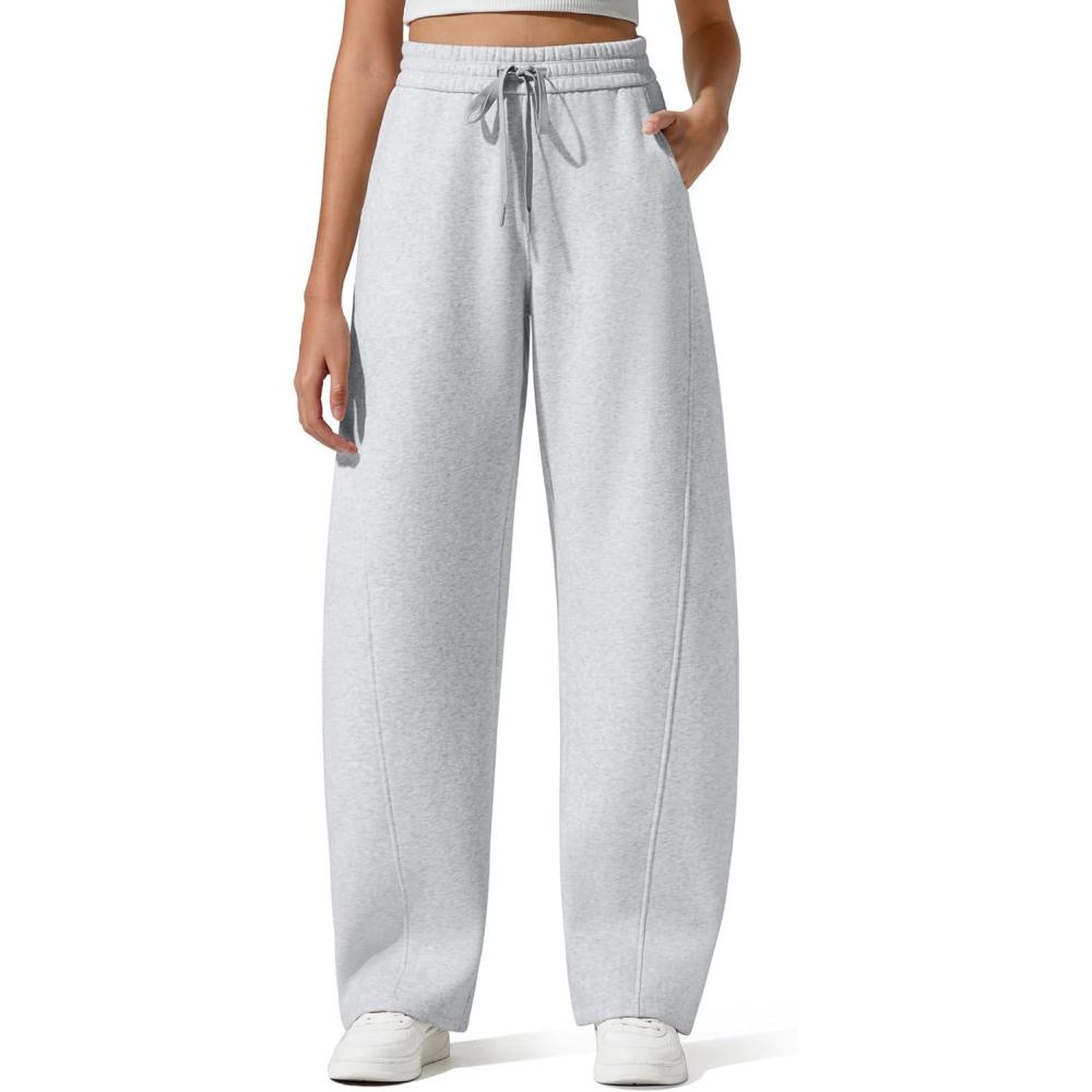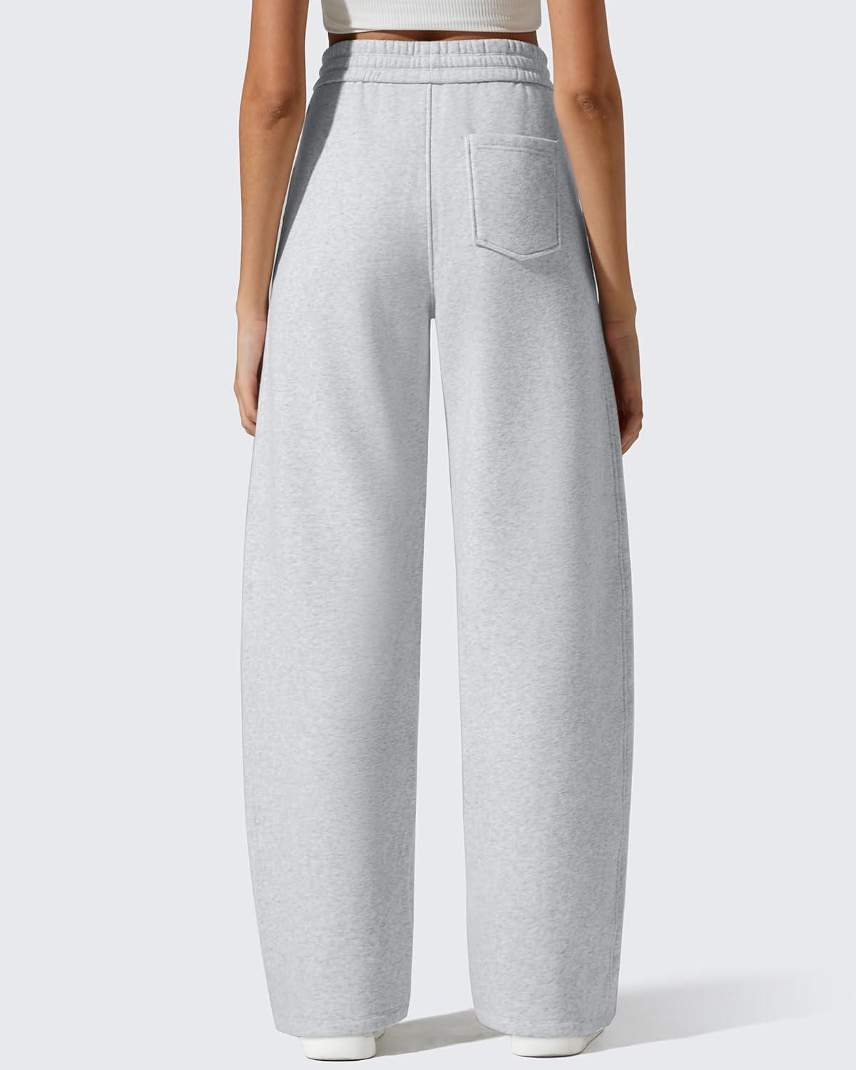 G4Free Flurrylux Fleece Lined Baggy Barrel Sweatpants Cotton Wide Leg Lounge Pants with Pockets(Light Heather)