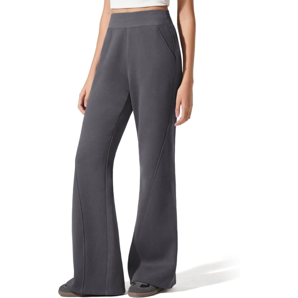 G4Free Flurrylux Fleece Lined Pants Women Cotton Loose Flare Sweatpants with Pockets Winter Casual(Dark Gray)