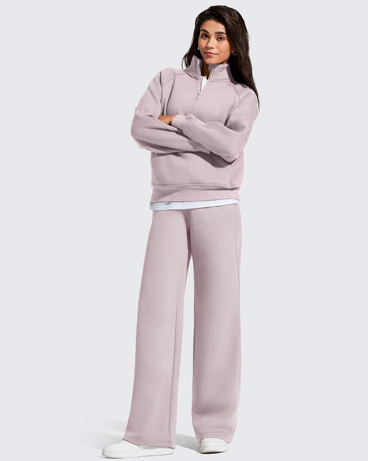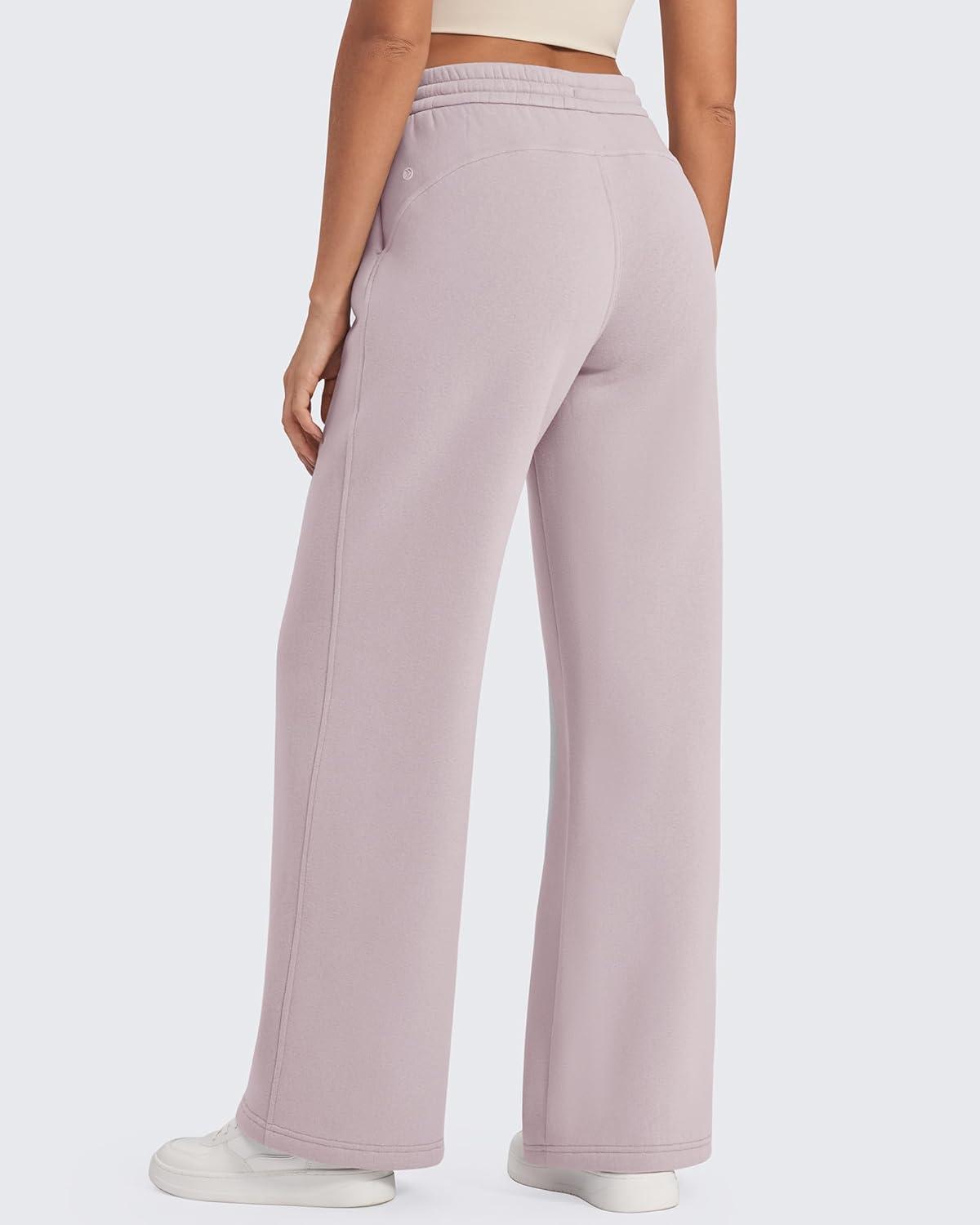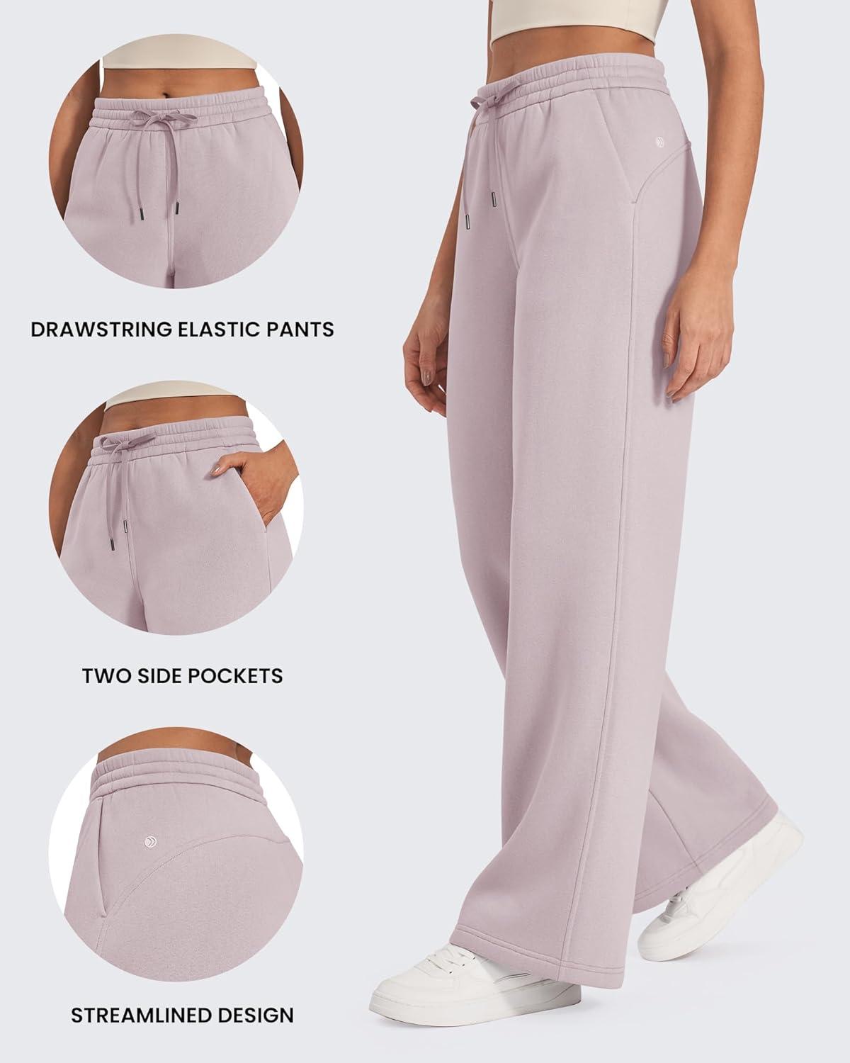 G4Free Flurrylux Fleece Lined Sweatpants Women Cotton Wide Leg Pants with Pockets Lounge Casual(Dusty Rose)