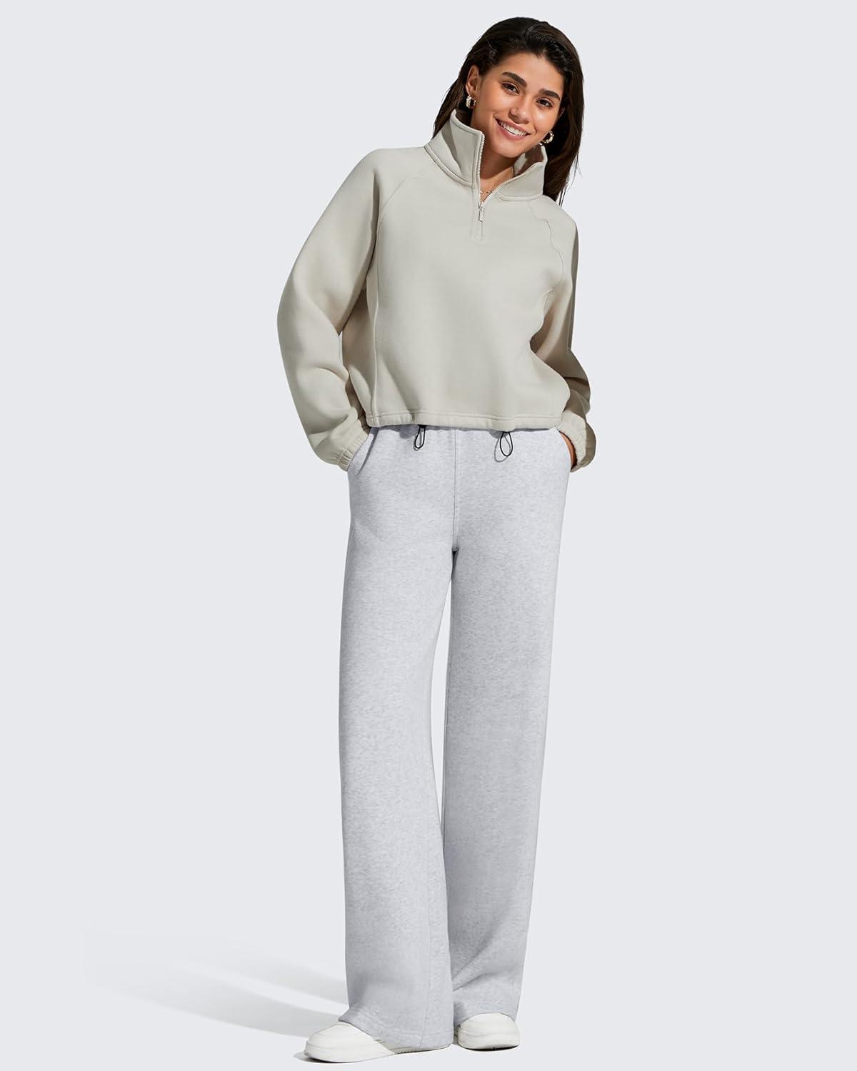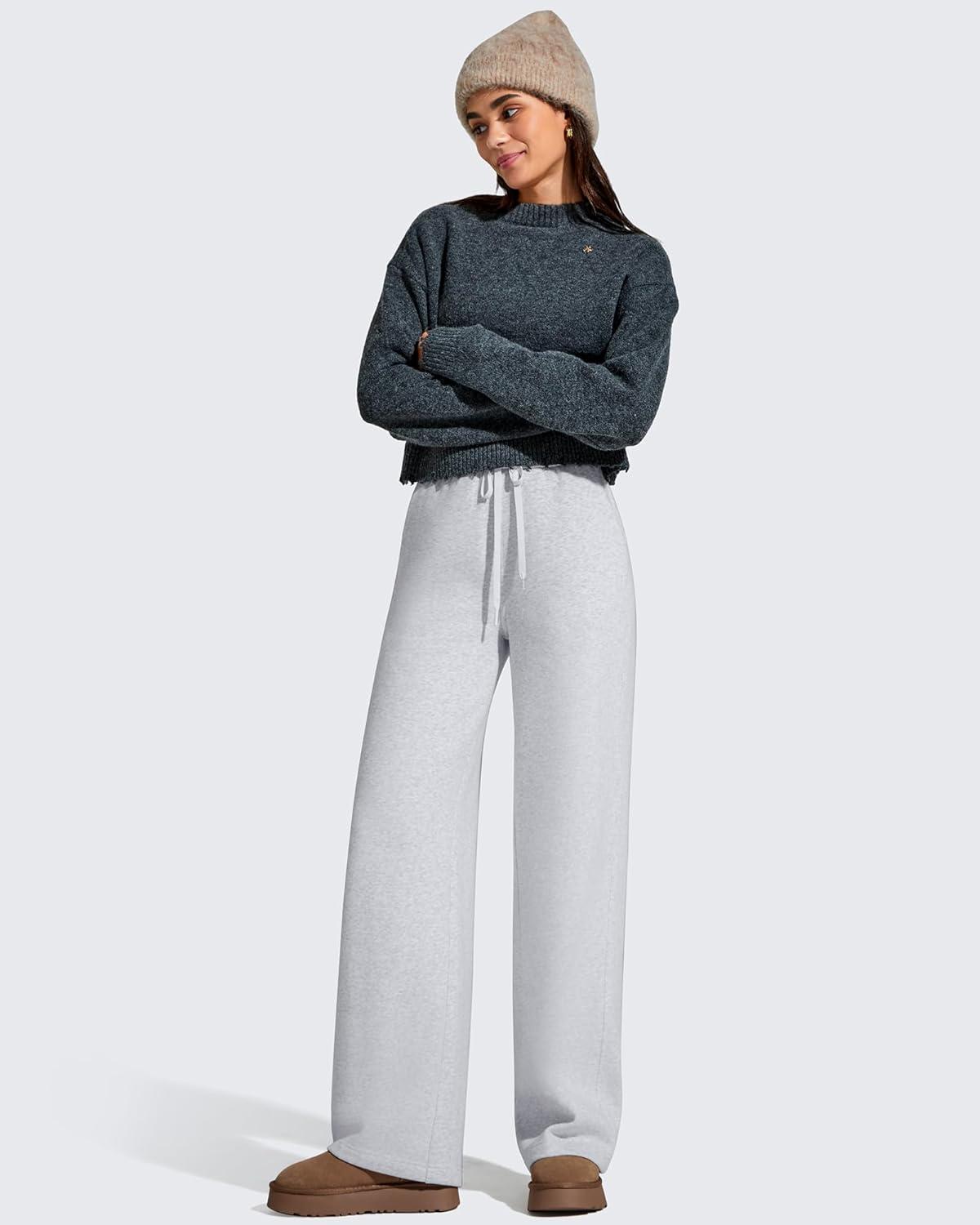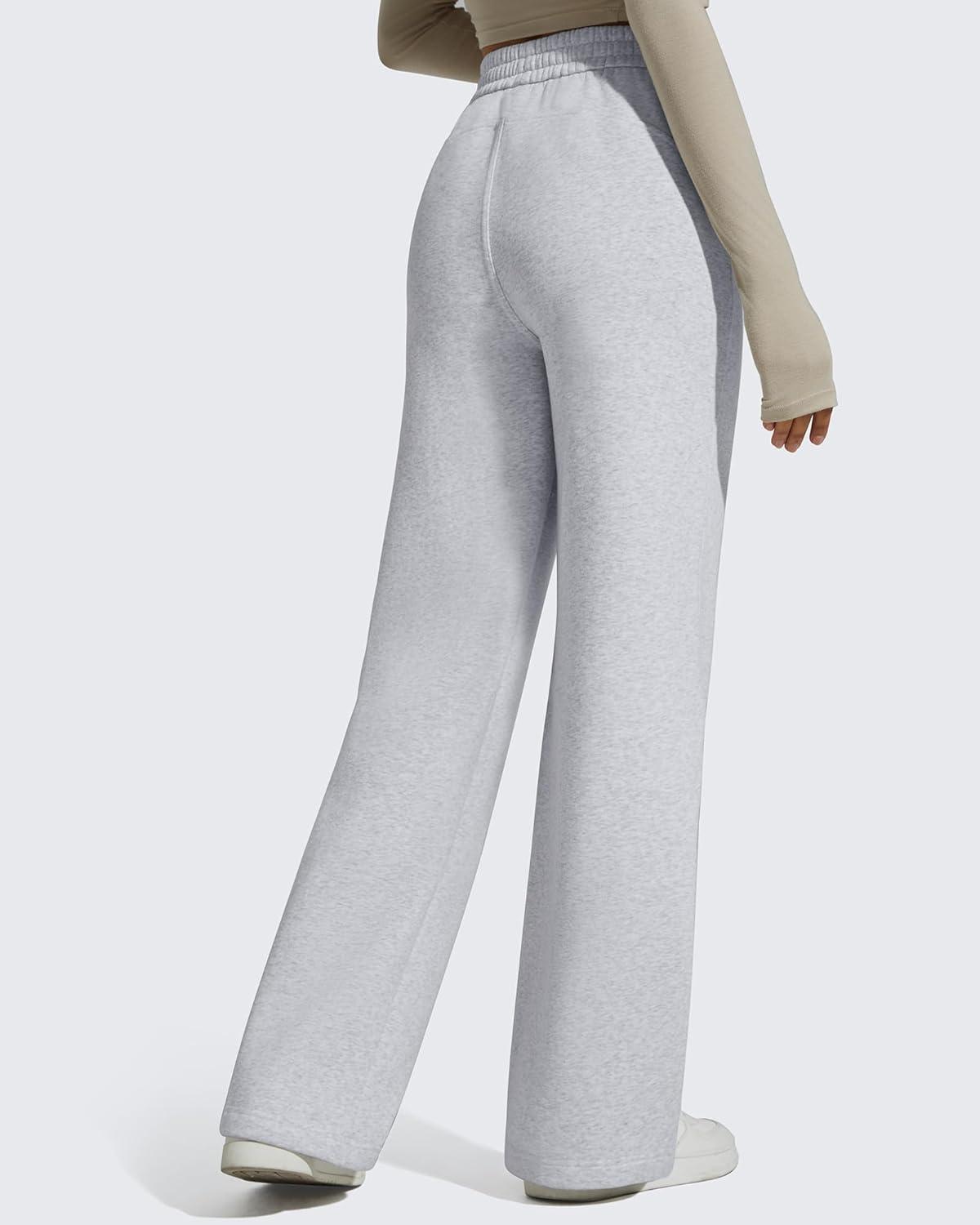 G4Free Flurrylux Fleece Lined Sweatpants Women Cotton Wide Leg Pants with Pockets Lounge Casual(Light Heather)