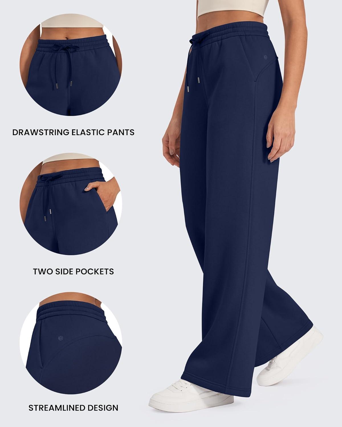 G4Free Flurrylux Fleece Lined Sweatpants Women Cotton Wide Leg Pants with Pockets Lounge Casual(Royal Blue)