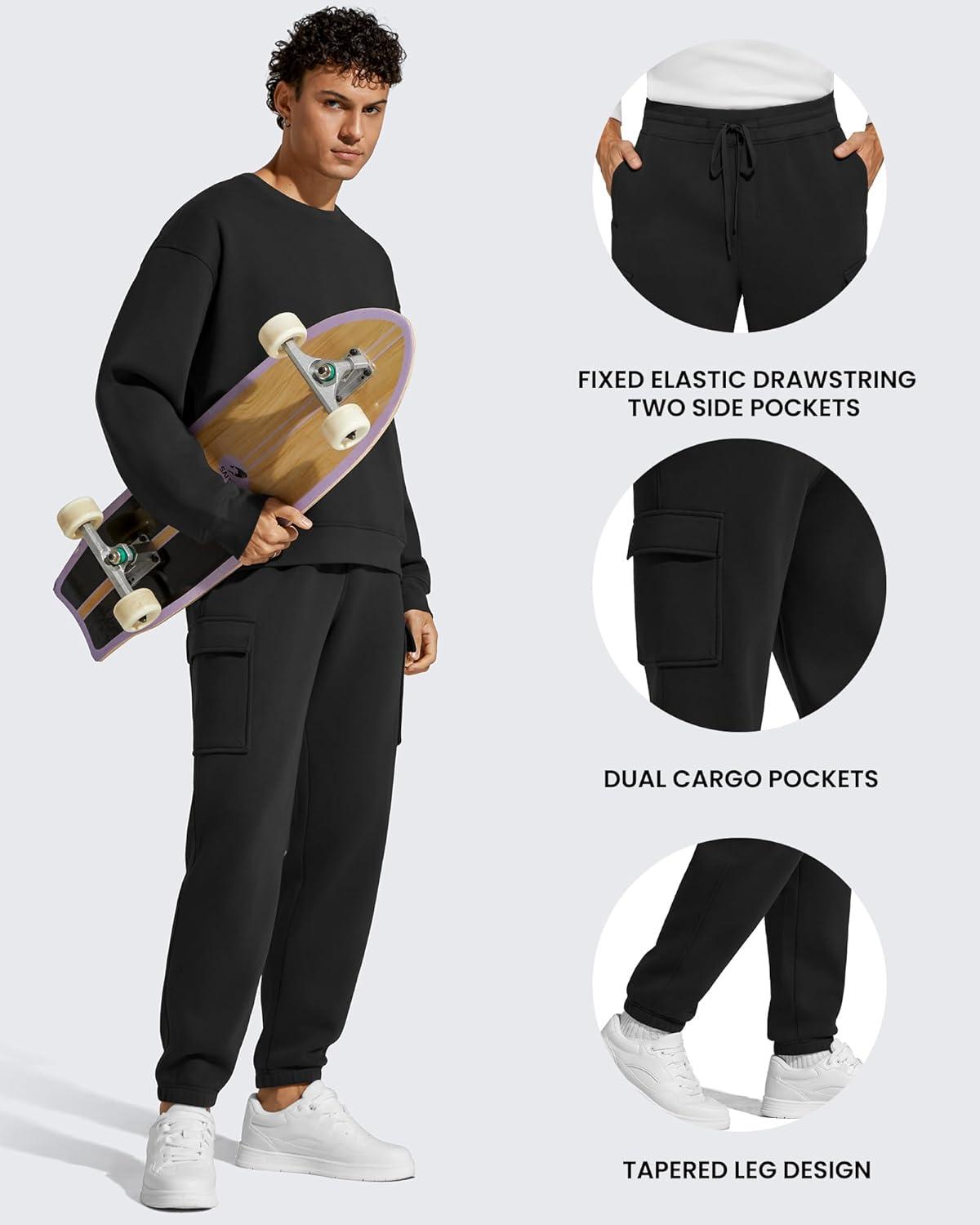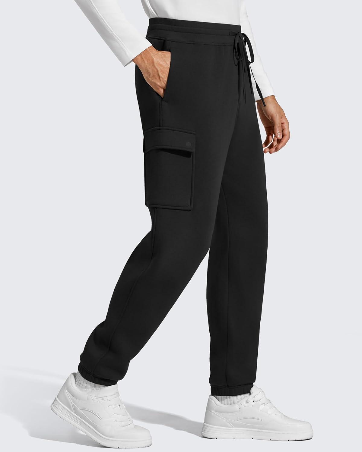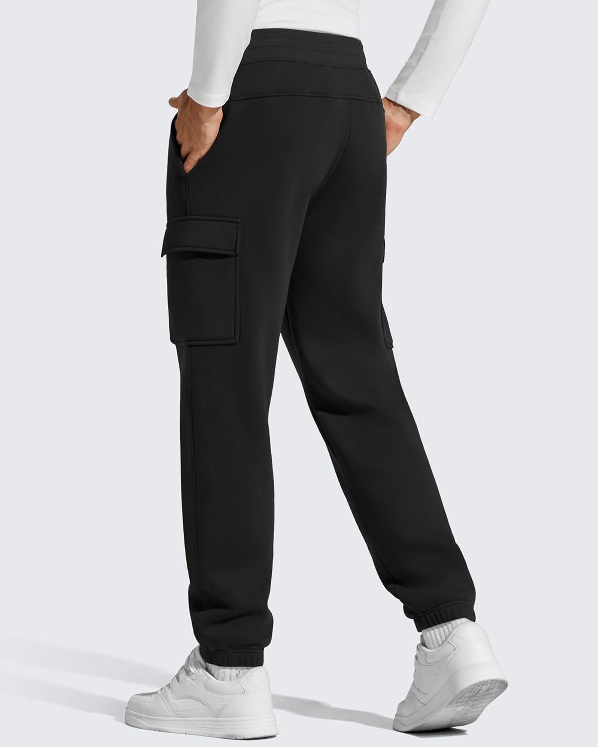 G4Free Flurrylux Men's Fleece Lined Joggers Cargo Pants Cotton Warm Drawstring Sweatpants with 4 Pockets(Black)