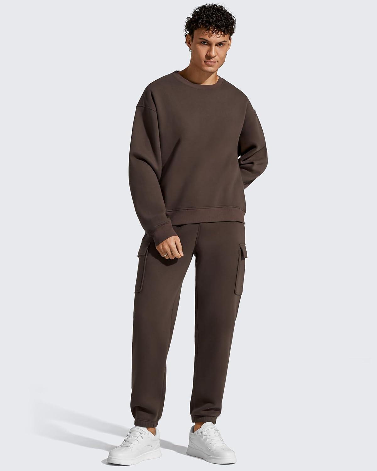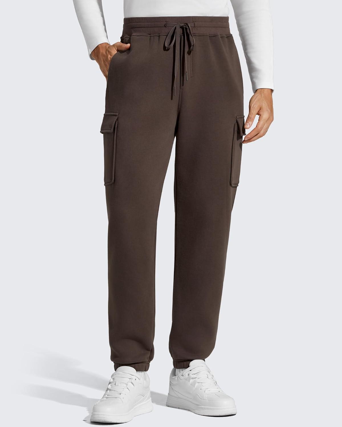 G4Free Flurrylux Men's Sweatpants Cargo Fleece Lined Cotton Warm Drawstring Pants with 4 Pockets(Terracotta Brown)