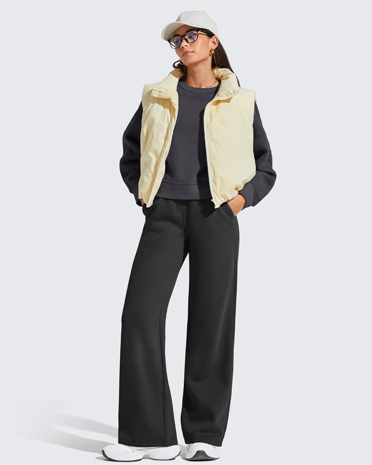 G4Free Flurrylux Women’s Cropped Crewneck Sweatshirts Fleece Lined Loose Fit Pullover Fall Clothes Casual Tops(Black)