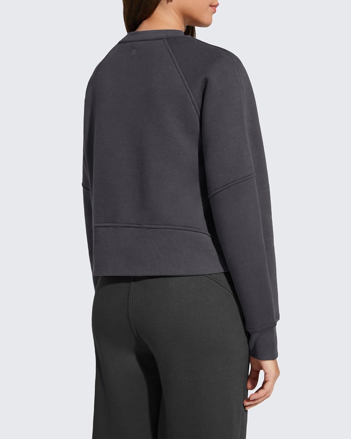 G4Free Flurrylux Women's Cropped Crewneck Sweatshirts Fleece Lined Loose Fit Pullover Fall Clothes Casual Tops(Dark Gray)