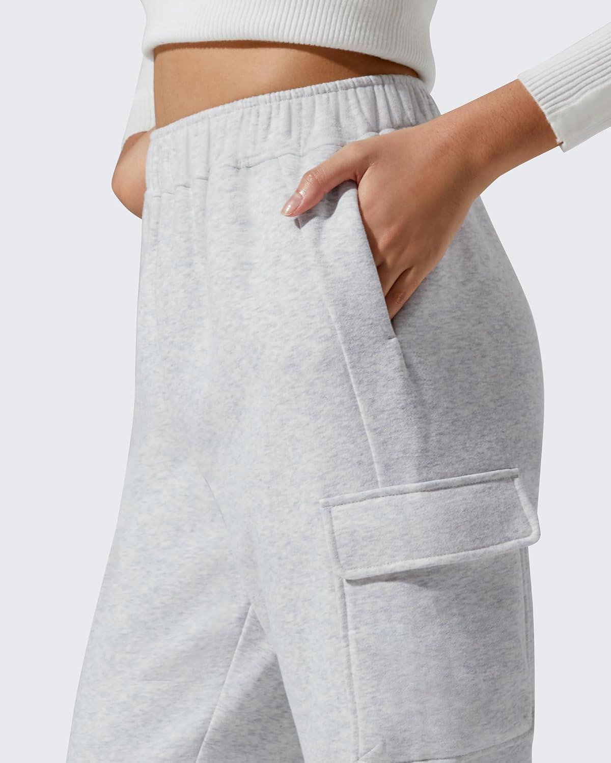 G4Free Flurrylux Women’s Fleece Lined Joggers Pants Cotton Cargo Sweatpants with Pockets(Light Heather)