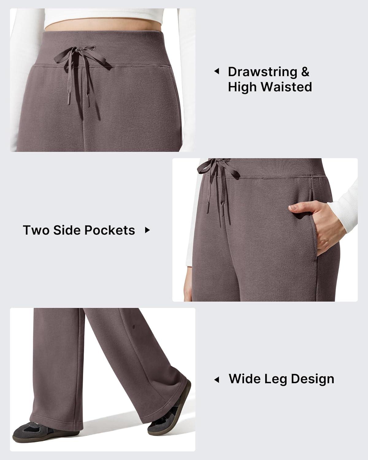 G4Free Flurrylux Women's Fleece Lined Wide Leg Sweatpants Drawstring Cotton Thermal Lounge Pants(Tapue)