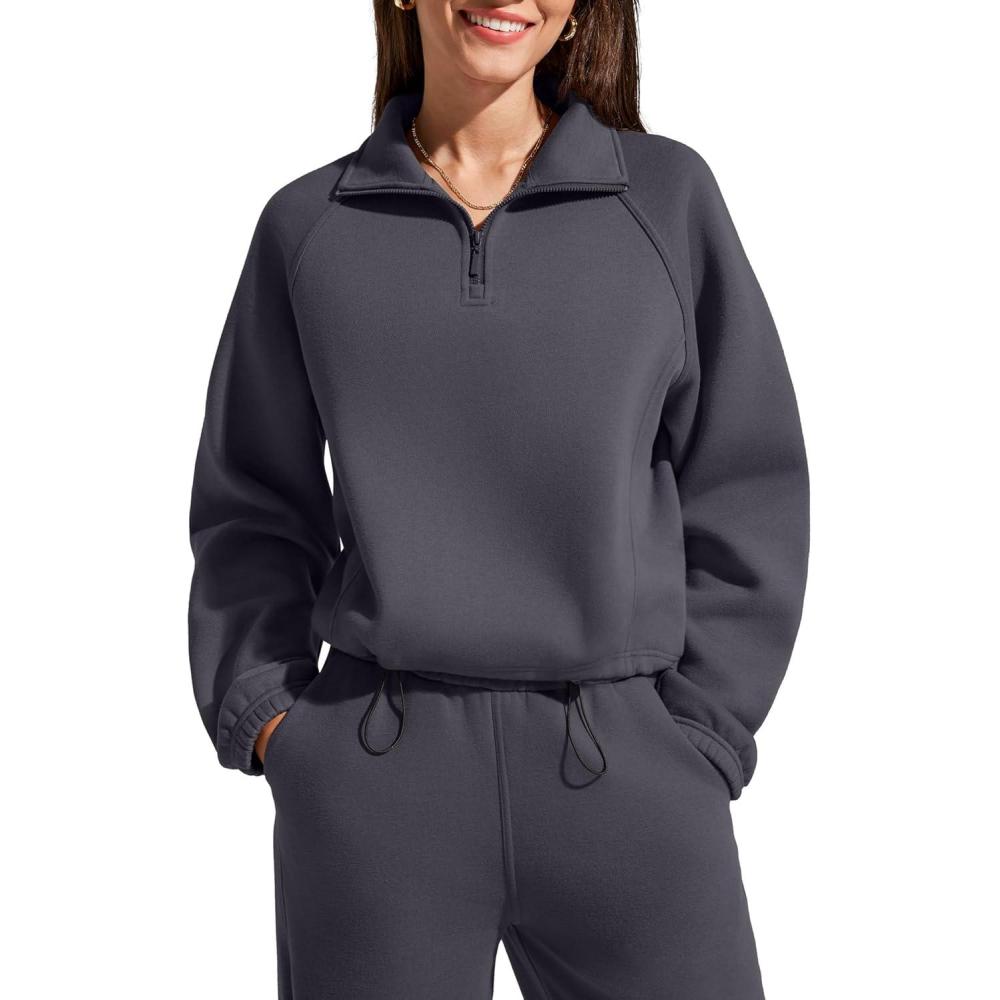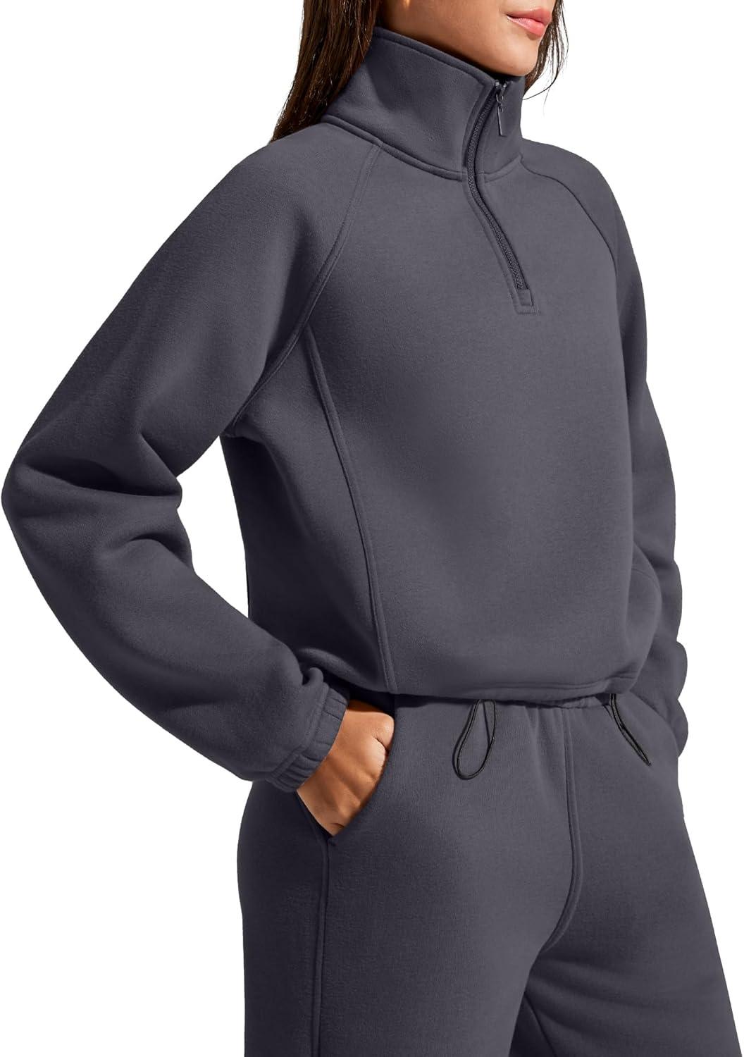 G4Free Flurrylux Womens Sweatshirts Fleece Lined Half Zip Mock Neck Cropped Pullover Winter Fashion Outfits Clothes(Dark Gray)