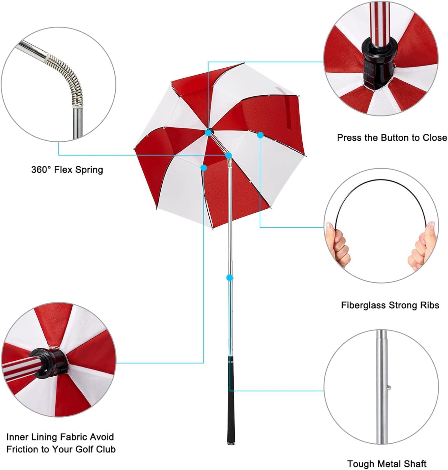 G4Free Golf Bag Umbrella for Club Protection Flex Umbrella(Red/White)