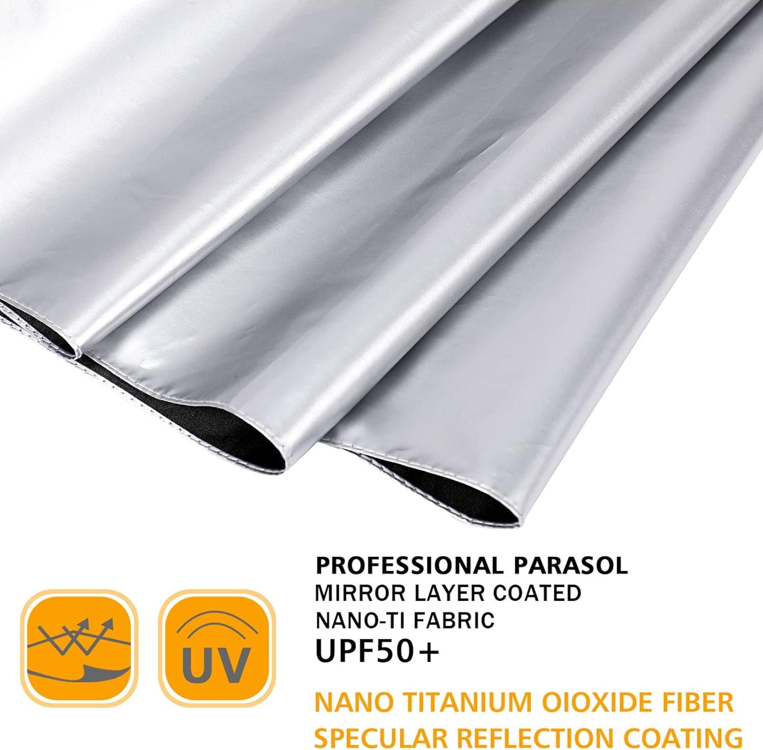 Water Resistant Fabric. Lightweight as 0.7lb. The material of this golf club umbrella is made of 100% polyester water-resistant 210T pongee fabric, a thick metal shaft, tough fiberglass ribs, and molding-in-one tips, making it windproof on rainy days and in hard conditions.