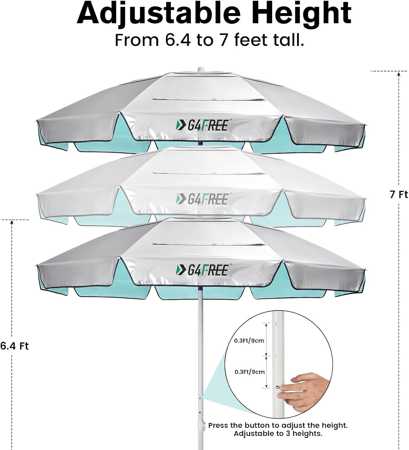 G4Free Heavy Duty Beach Umbrella for Sand, UPF 50+ UV Protection Sun Shelter Double Canopy with Air Vent and Push Button Tilt, 6.5 ft Portable Parasols with Carry Bag for Outdoor Patio Pool(Light Blue/Silver)
