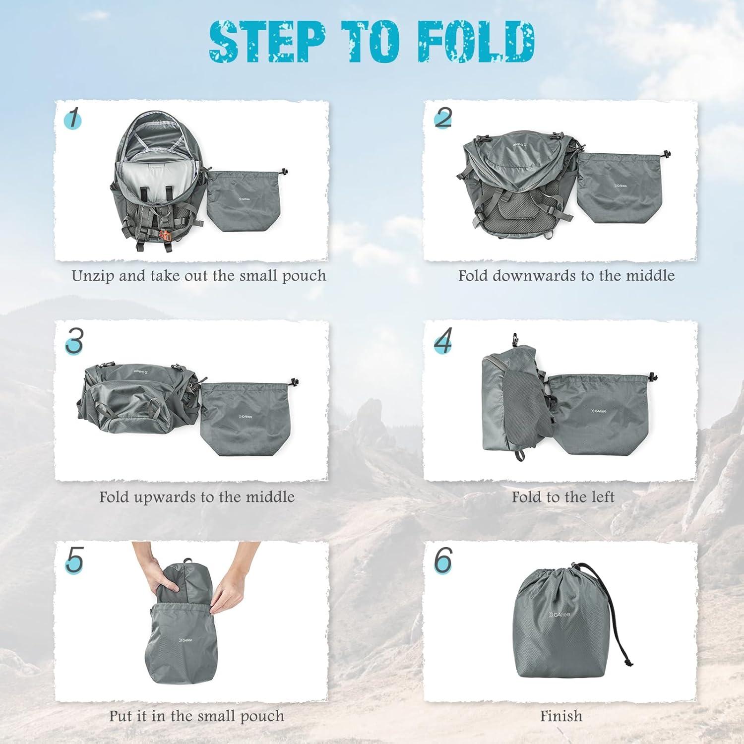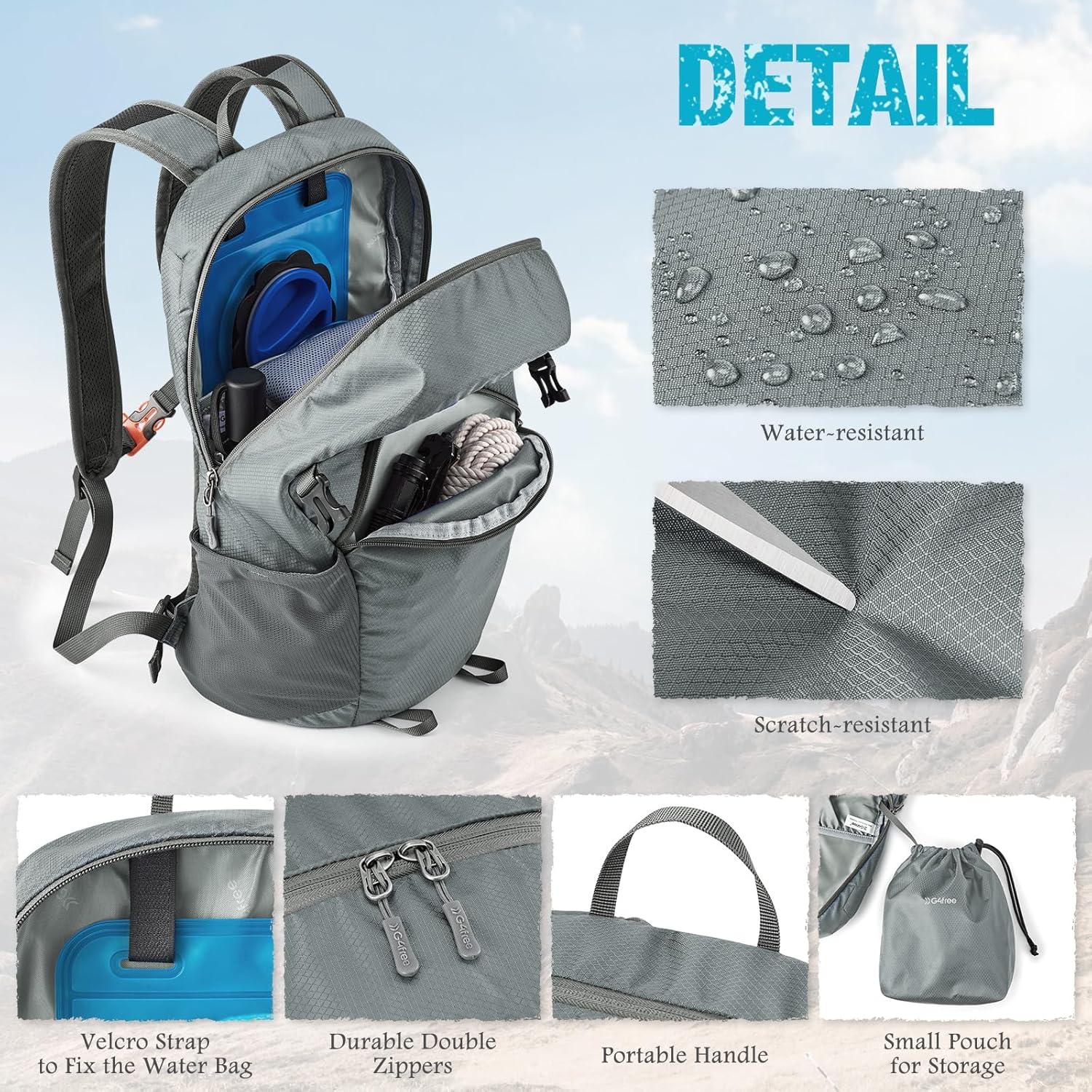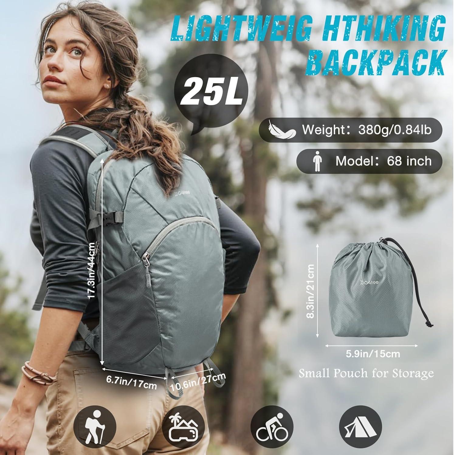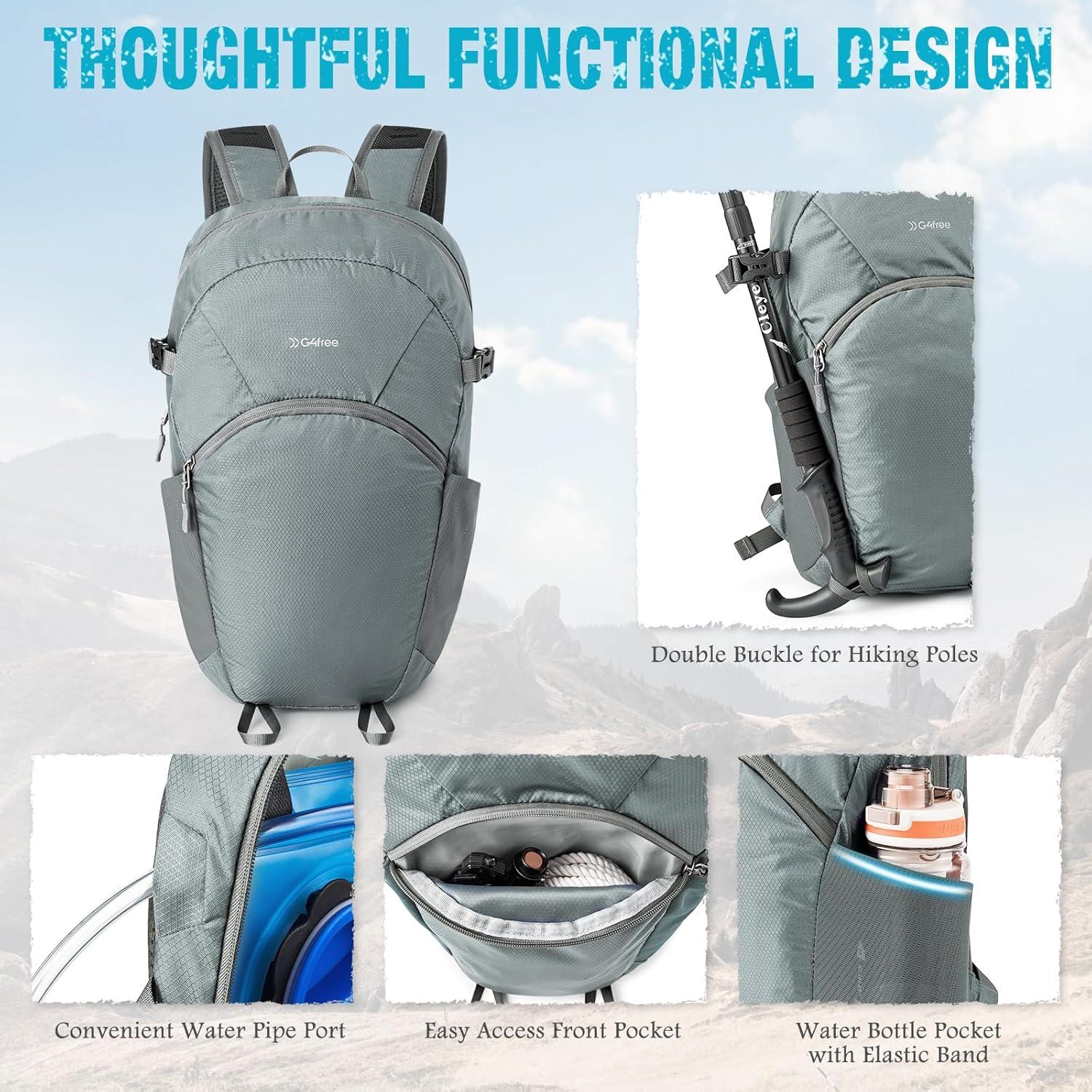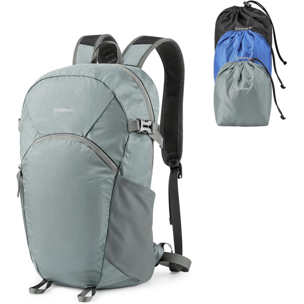 G4Free Hiking Backpack with Thickened Back Panel Packable 25L Lightweight Foldable Travel Daypack for Men Women(Black)(Grey)