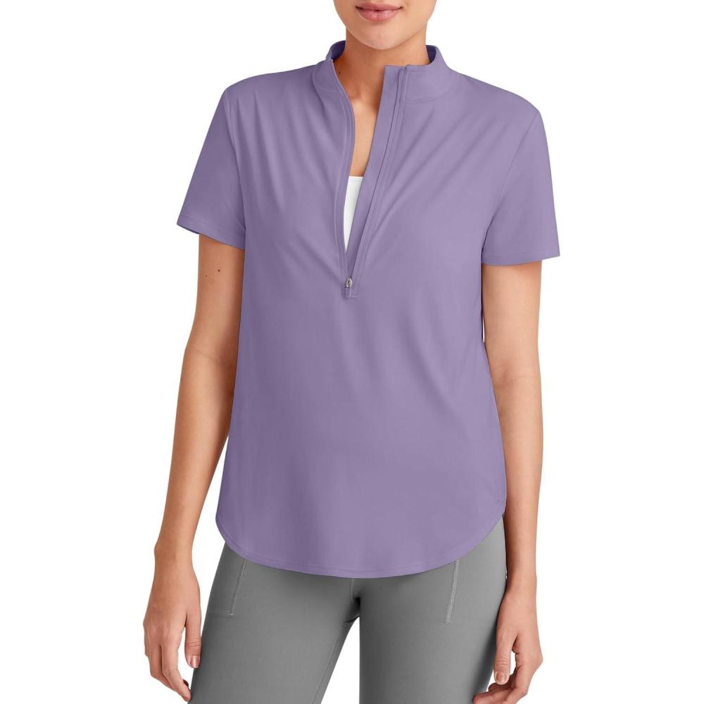 imageG4Free Lightbreeze UPF 50 Womens Workout Tops Short Sleeve Half Zip Golf Shirts Loose Fit Athletic Gym Tshirts RunningGray Purple