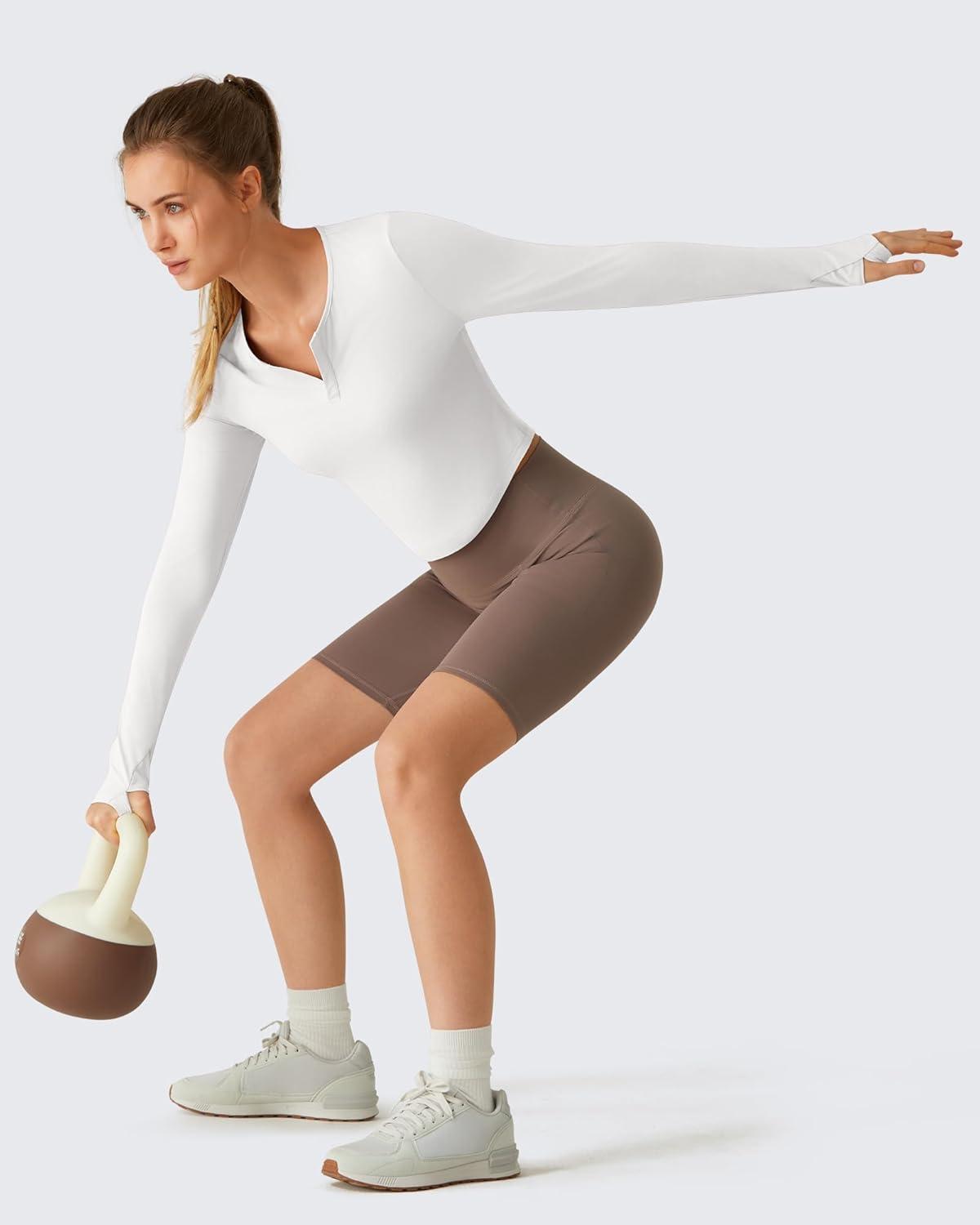 G4Free Lightbreeze Women UPF 50+ Sun Shirts Thumbholes Long Sleeve Crop Workout Tops V Neck T-Shirts Casual(White)