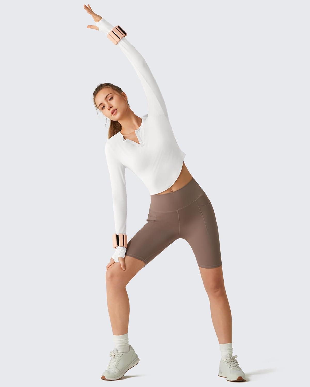 imageG4Free Lightbreeze Women UPF 50 Sun Shirts Thumbholes Long Sleeve Crop Workout Tops V Neck TShirts CasualWhite