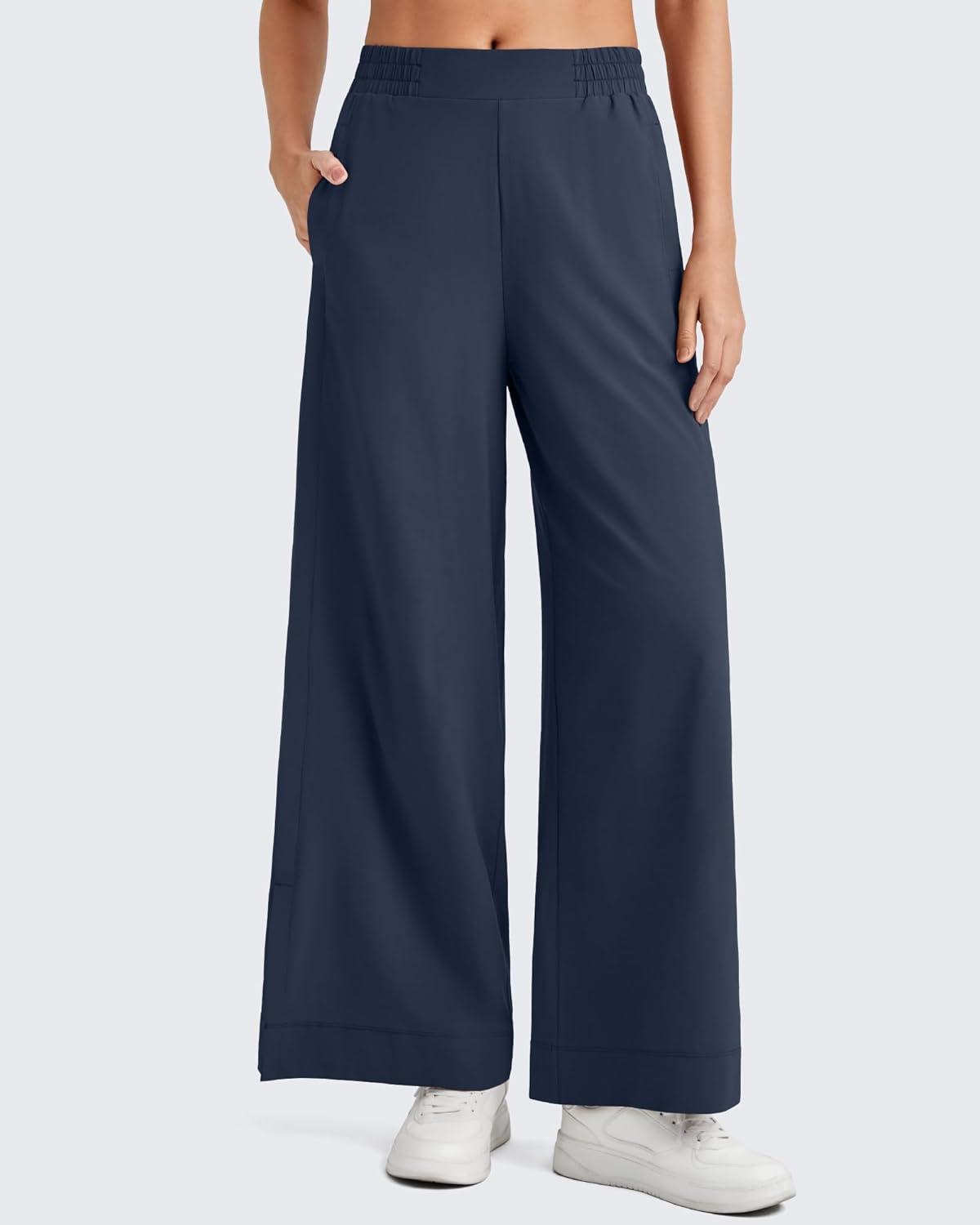 G4Free Lightweight Flowy Wide Leg Ankle Pants Women Side Slit High Waisted Baggy Trouser Casual Lounge Summer(Dark Navy)