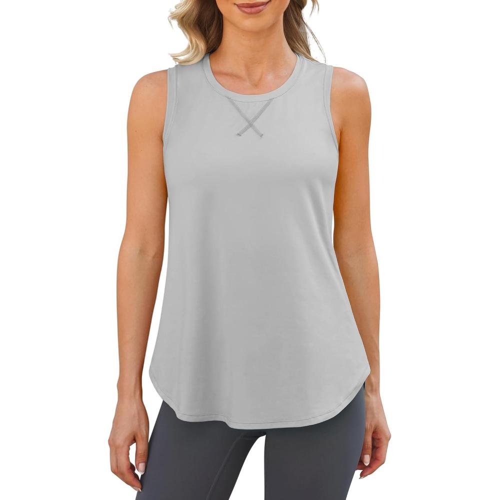 imageG4Free Lightweight Racerback Workout Tank Tops for Women High Neck Athletic Long Tanks Fast Dry Sleeveless Running ShirtsLight Gray